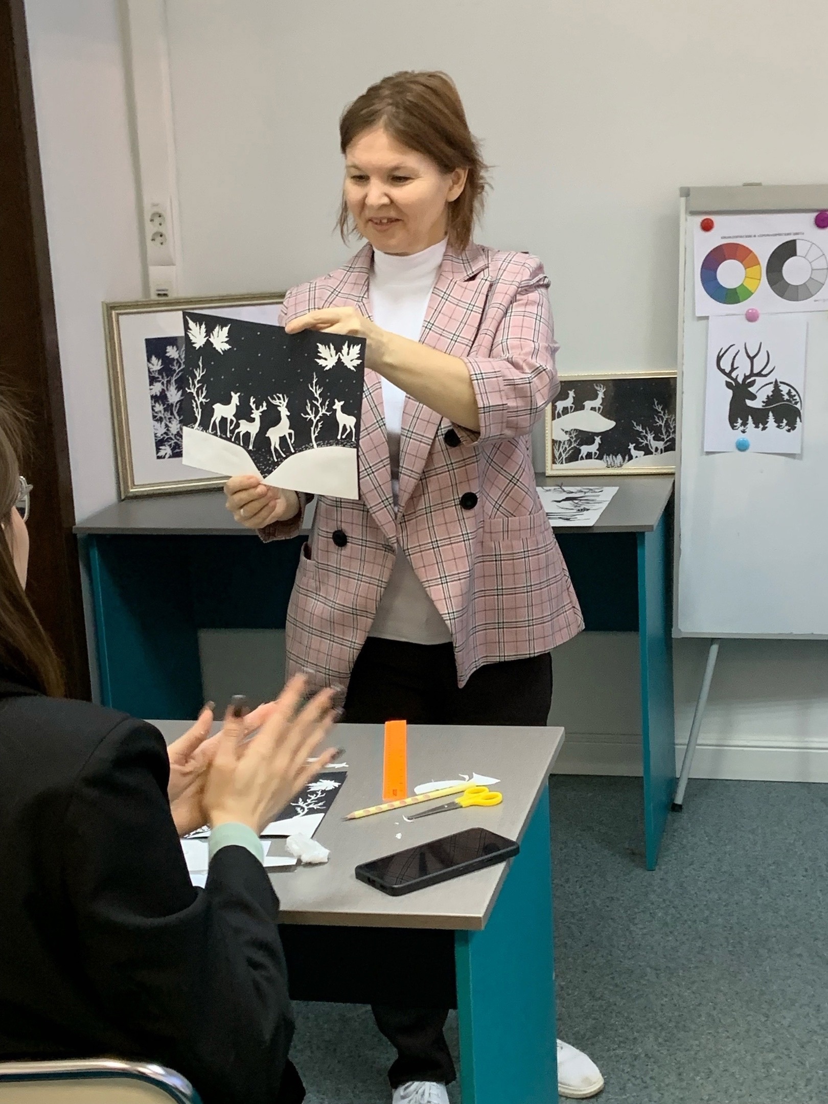 В рамках проведенного занятия педагоги овладели мастерством создания картин в технике «Силуэтное оригами». Каждый создал авторскую композицию.