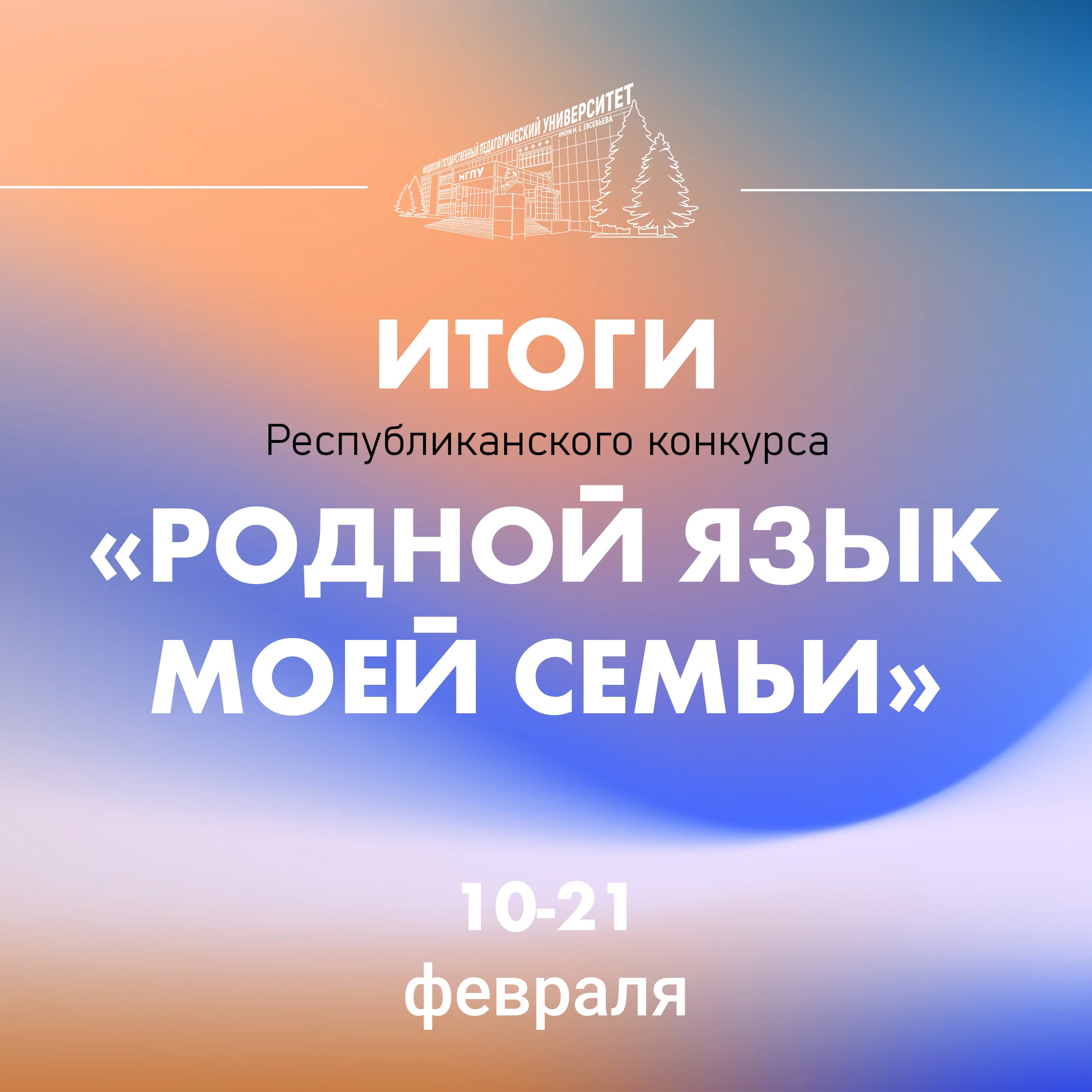 Республиканский конкурс научно-методических проектов студентов и учащихся общеобразовательных организаций Республики Мордовия «Родной язык моей семьи» был проведен на базе Научно-образовательного центра продвижения родного языка и литературы и базовой кафедры родного языка и национальной культуры филологического факультета МГПУ им. М. Е. Евсевьева с 10 по 21 февраля 2024 года.