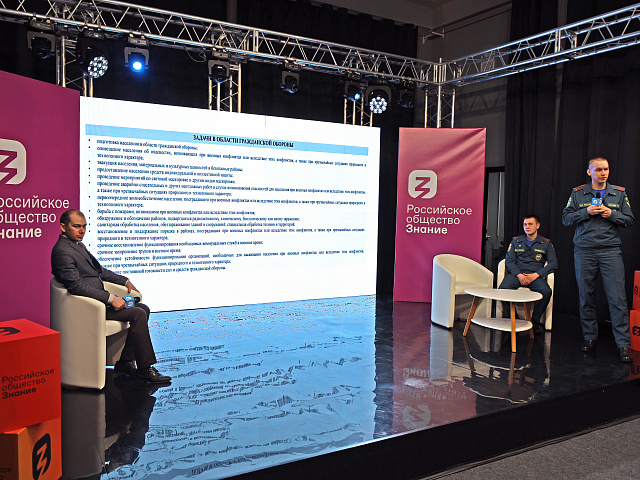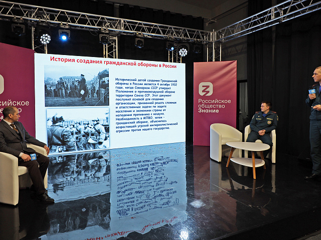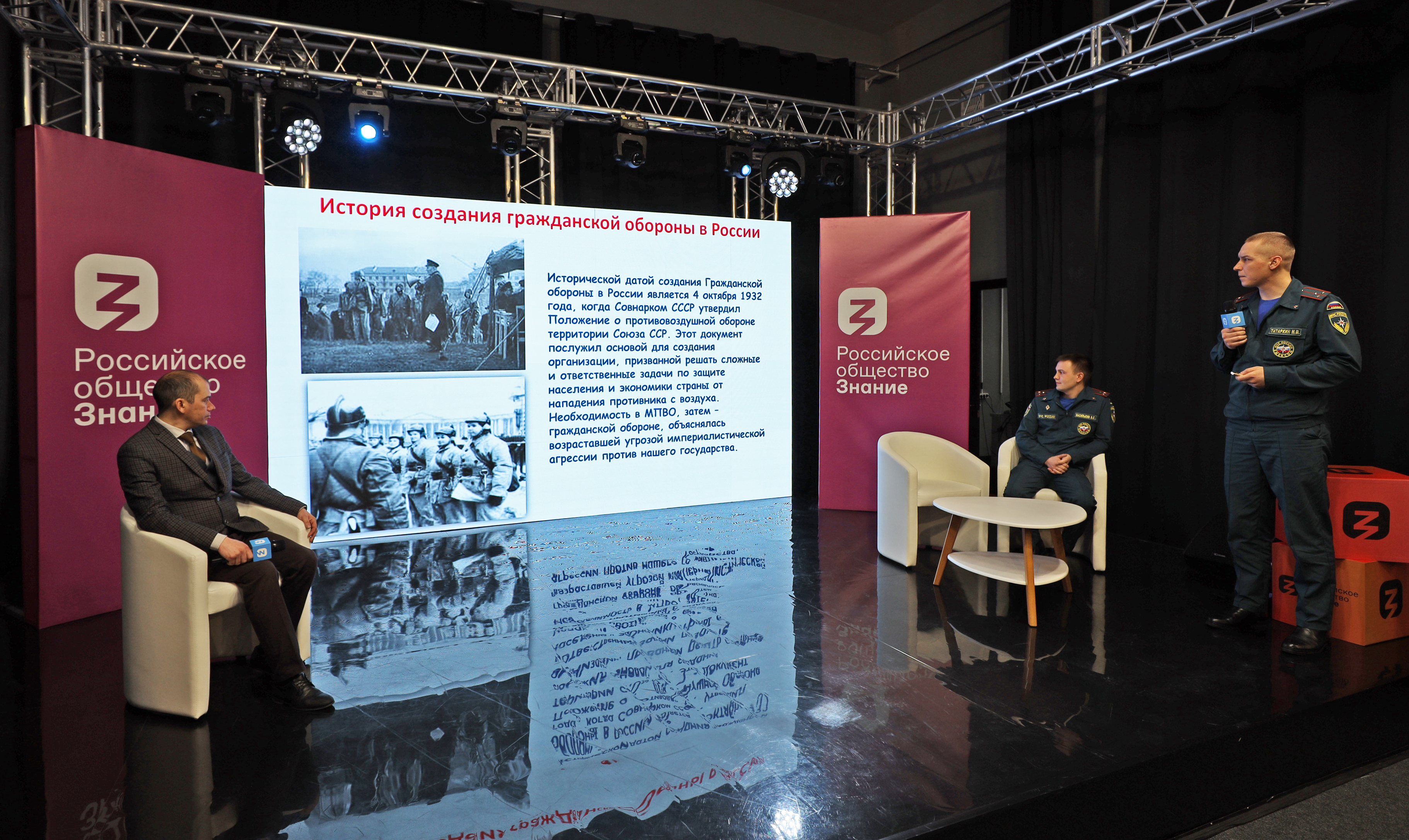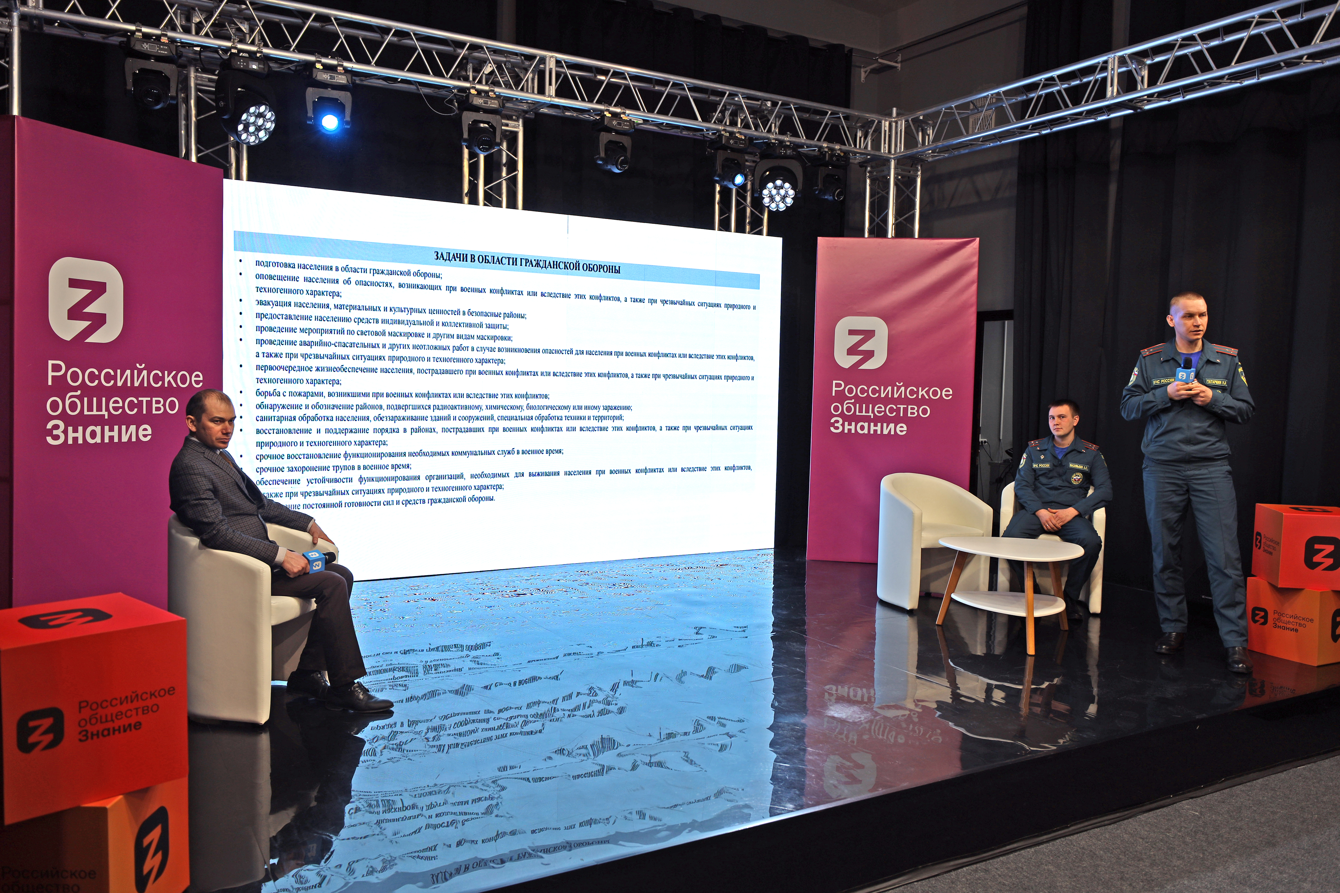 1 марта 2024 года на региональной площадке Российского общества «Знание» состоялась интерактивная лекция с элементами практического применения навыков по гражданской обороне. Лекторами выступили сотрудники Главного управления МЧС России по Республике Мордовия Н. В. Татаркин и А. С. Василькин.