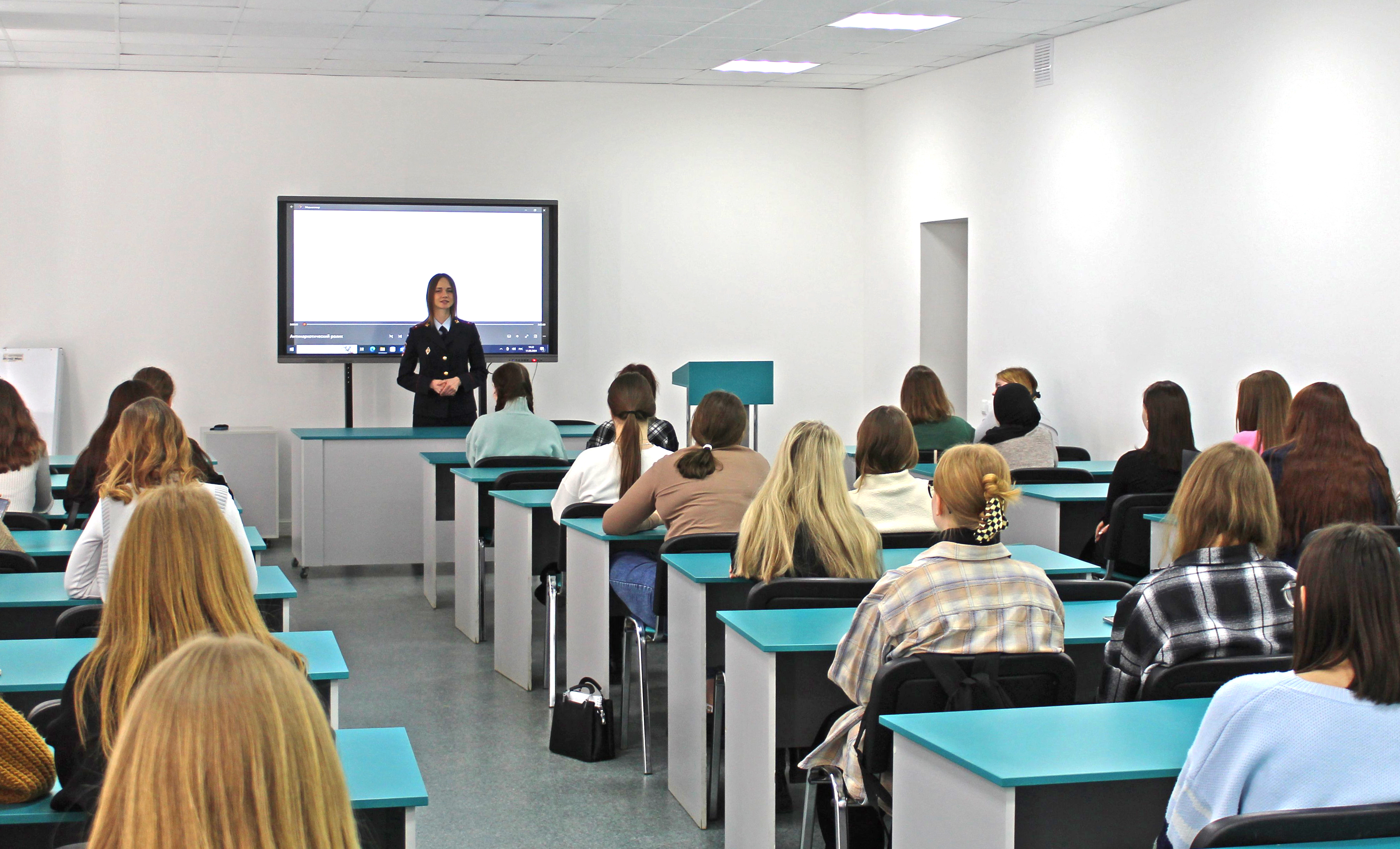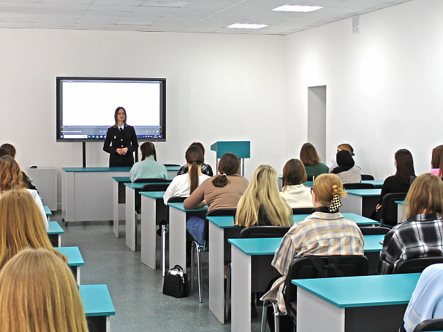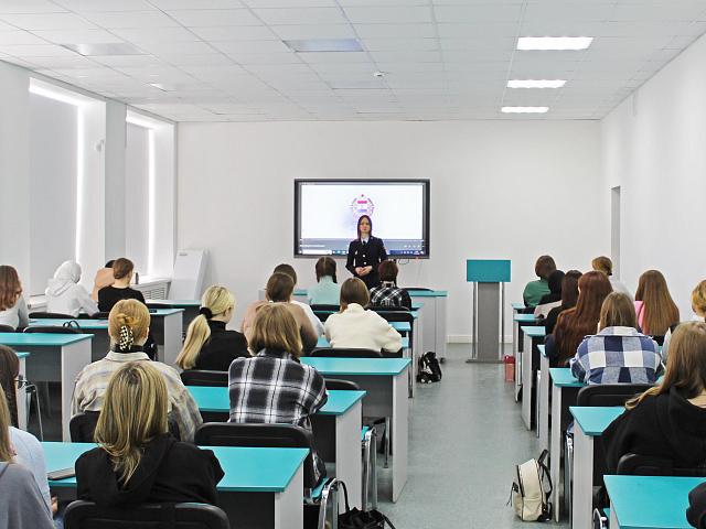 11 марта состоялась встреча сотрудника Управления по контролю за оборотом наркотиков МВД по Республике Мордовия, старшего лейтенанта полиции Глазковой Александры Олеговны со студентами факультета среднего профессионального образования.