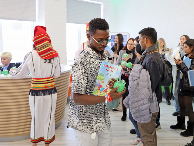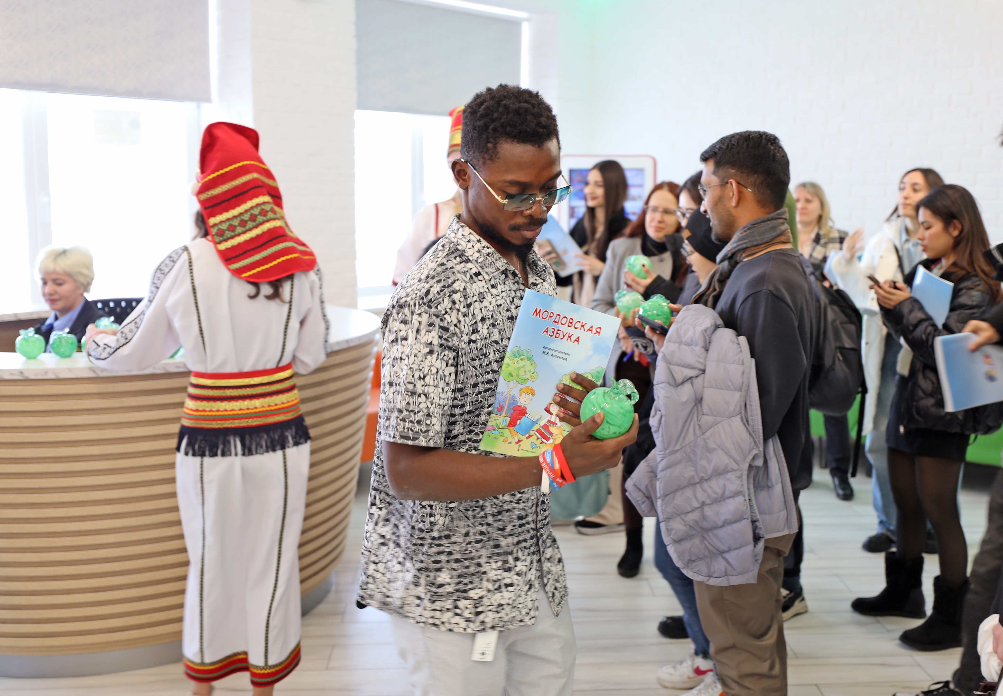 Марина Владимировна не оставила гостей без подарков – на память ребятам вручили памятный сувенир в виде зеленого яблока и мордовскую азбуку.