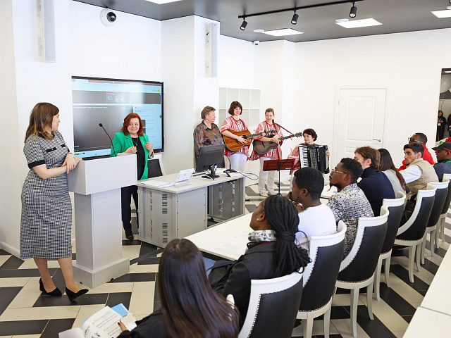 Поприветствовала иностранную молодежь доктор педагогических наук, профессор, ректор МГПУ им. М. Е. Евсевьева Марина Владимировна Антонова: «Большая честь принимать гостей из стольких стран именно на площадке нашего вуза, ведь педагогический университет активно продвигает традиции и культуру Российской Федерации».
