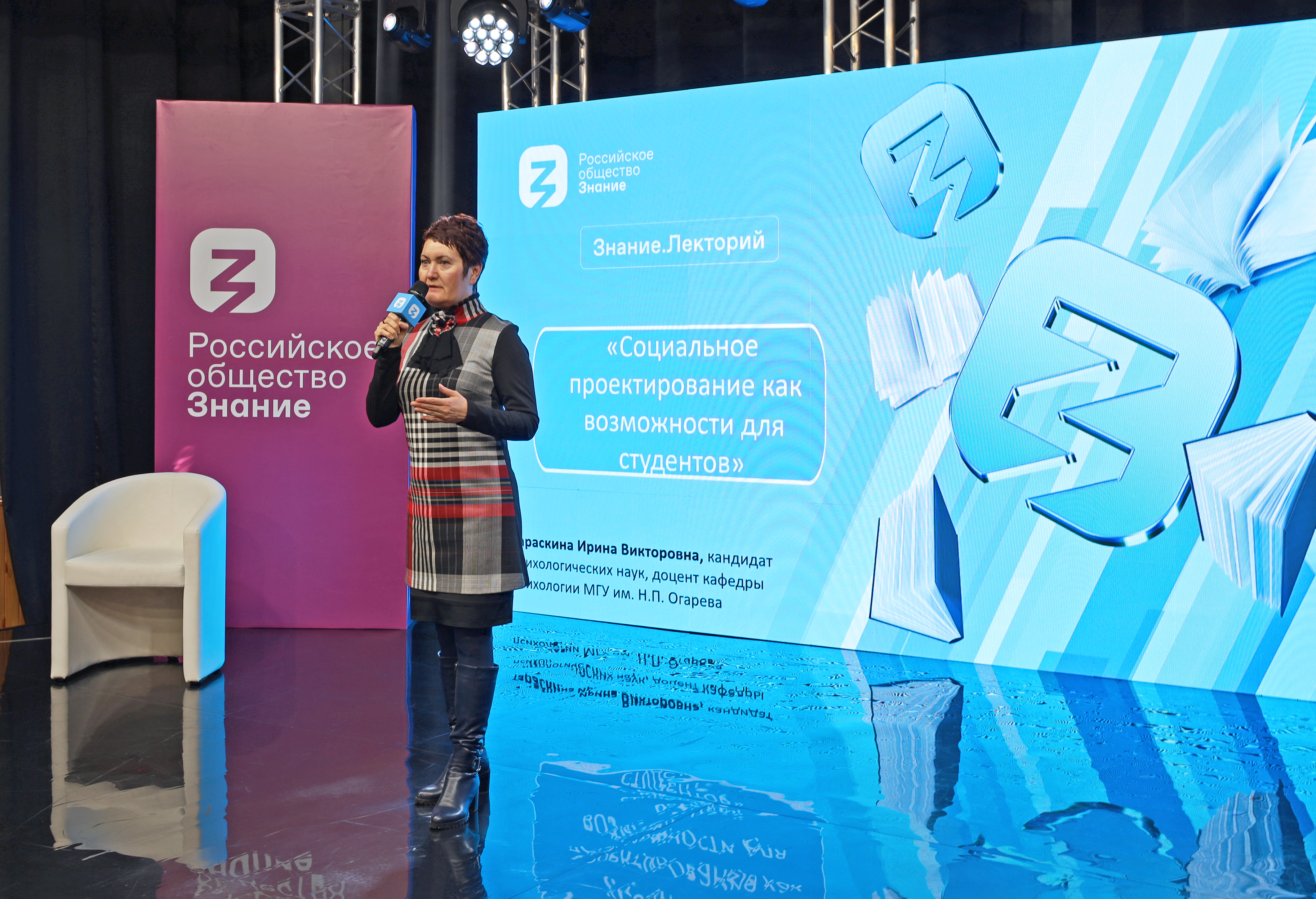 Сегодня, 20 марта, на региональной площадке Российского общества «Знание» состоялся семинар на тему социального проектирования. Побеседовала со студенческим сообществом кандидат психологических наук, доцент кафедры психологии МГУ им. Н. П. Огарева Ирина Викторовна Тараскина.