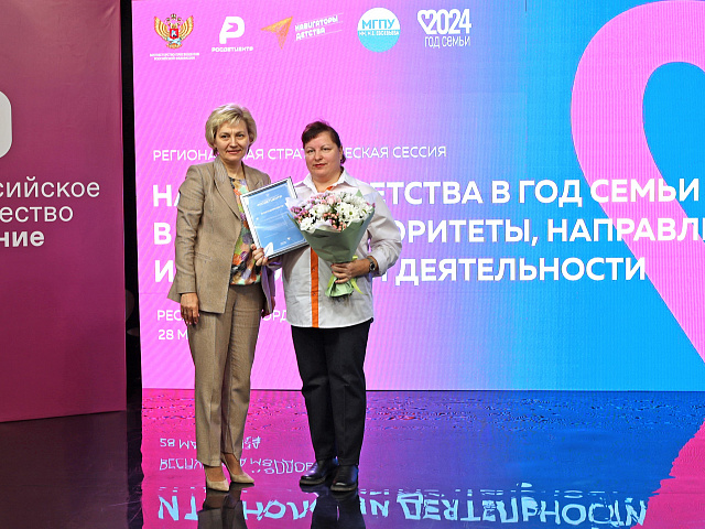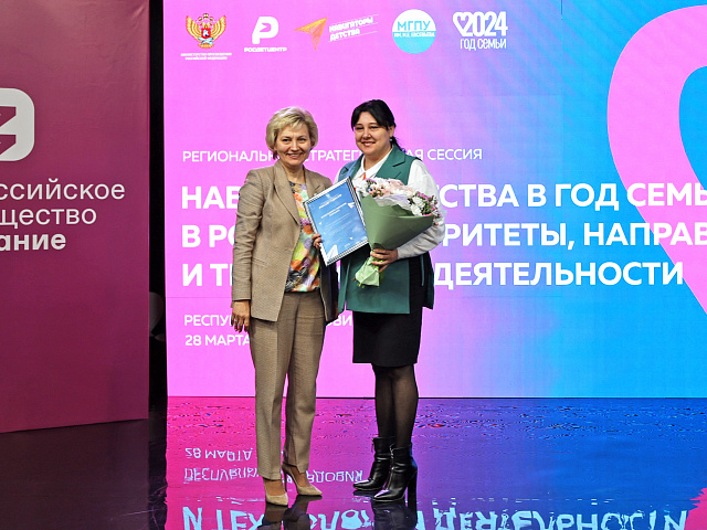В торжественной обстановке отмечена работа советников директора по воспитанию и взаимодействию с детскими общественными объединениями, а также всех причастных к их непрерывной образовательной деятельности. Так, коллективу МГПУ им. М. Е. Евсевьева вручено благодарственное письмо за вклад в организацию и реализацию обучения по дополнительной профессиональной программе повышения квалификации «Деятельность советника директора по воспитанию и взаимодействию с детскими общественными объединениями» от Российского детско-юношеского центра.