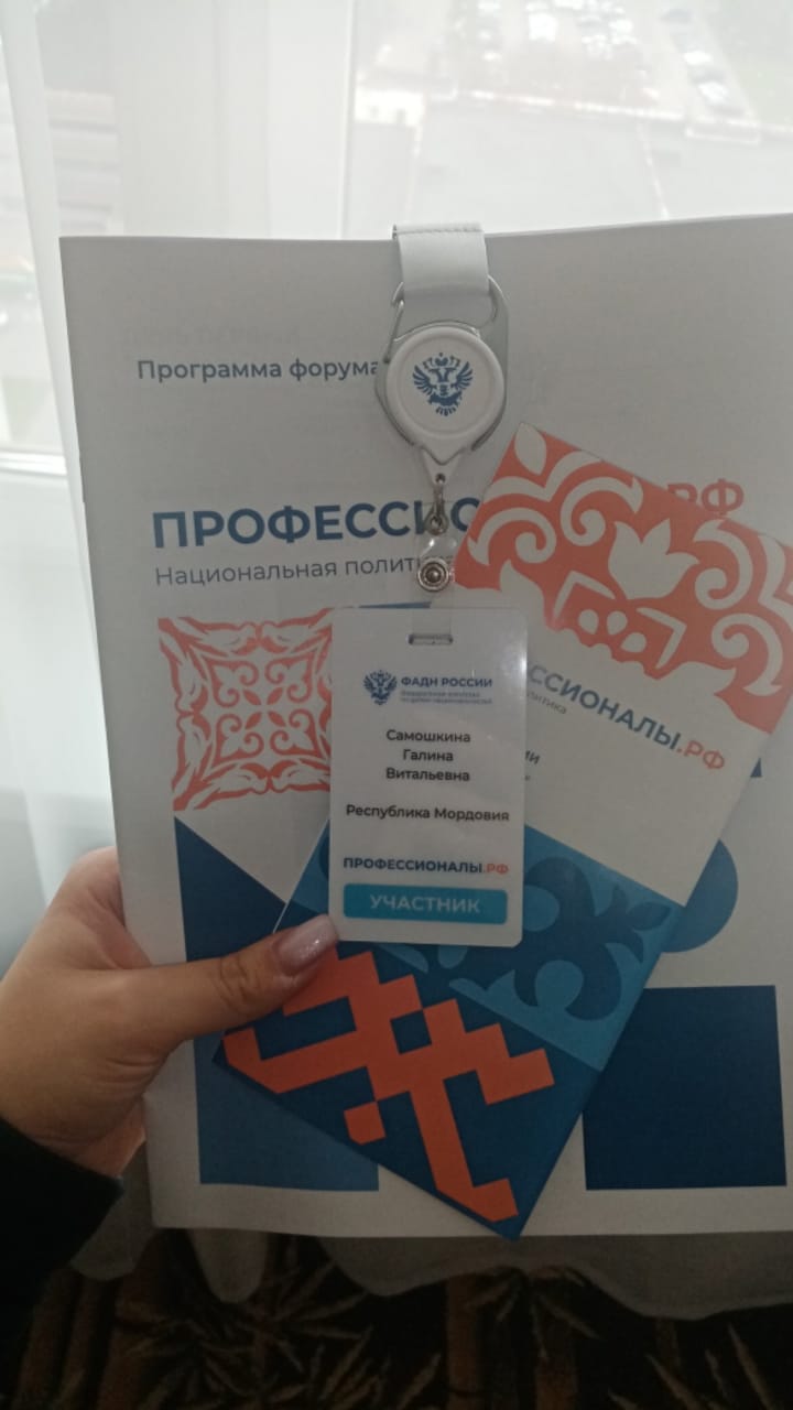 С 23 по 27 апреля в г. Москве состоялся Всероссийский форум молодых специалистов, государственных и муниципальных служащих и лидеров молодежных общественных объединений в сфере реализации государственной национальной политики «Профессионалы. РФ». Студентка Мордовского государственного педагогического университета имени М. Е. Евсевьева Галина Самошкина успешно прошла отборочный этап и стала участником Всероссийского форума от Республики Мордовия. Заявка для участия в конкурсном отборе была направлена Ассоциацией финно-угорских народов Российской Федерации. Организатором мероприятия выступило Федеральное агентство по делам национальностей.