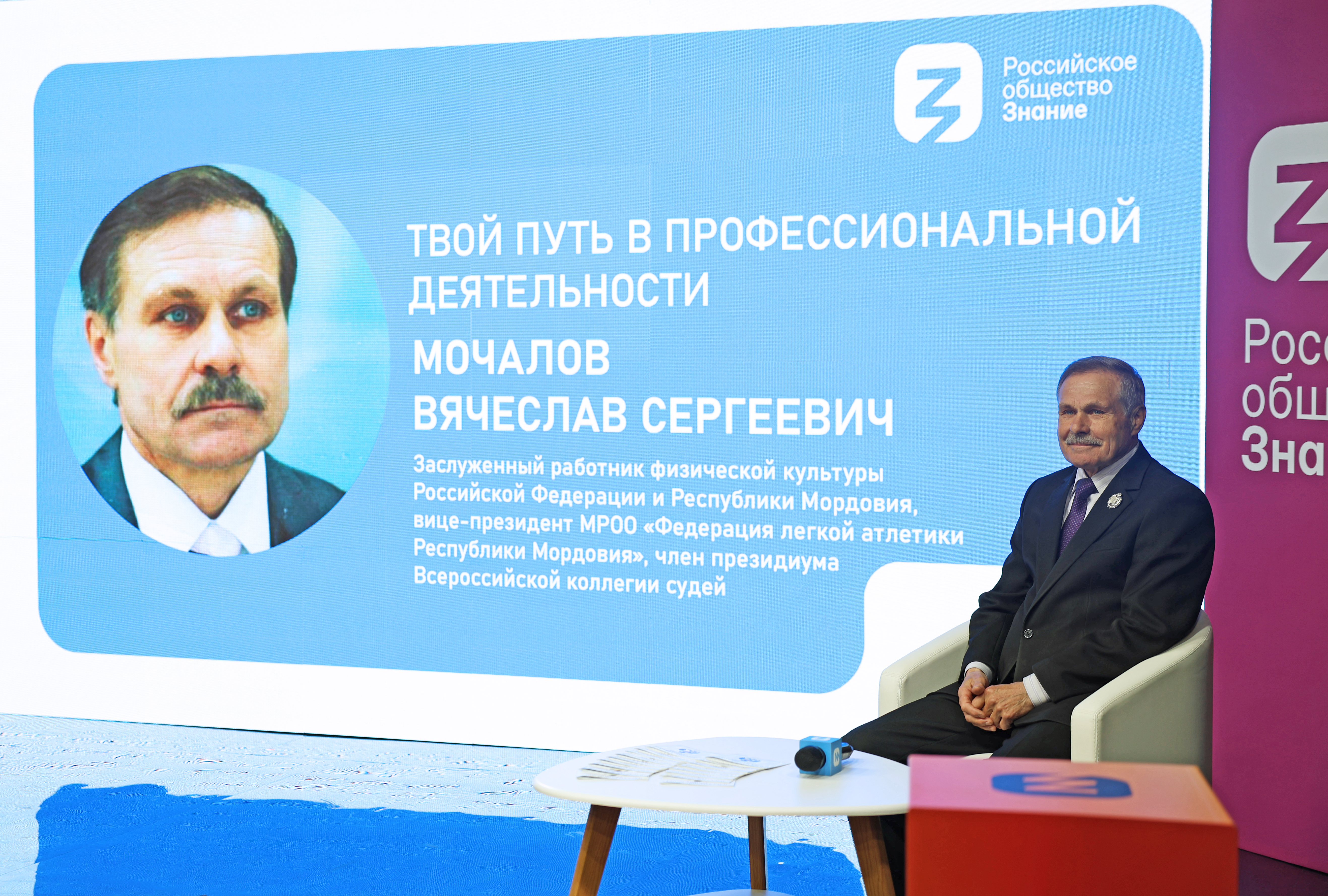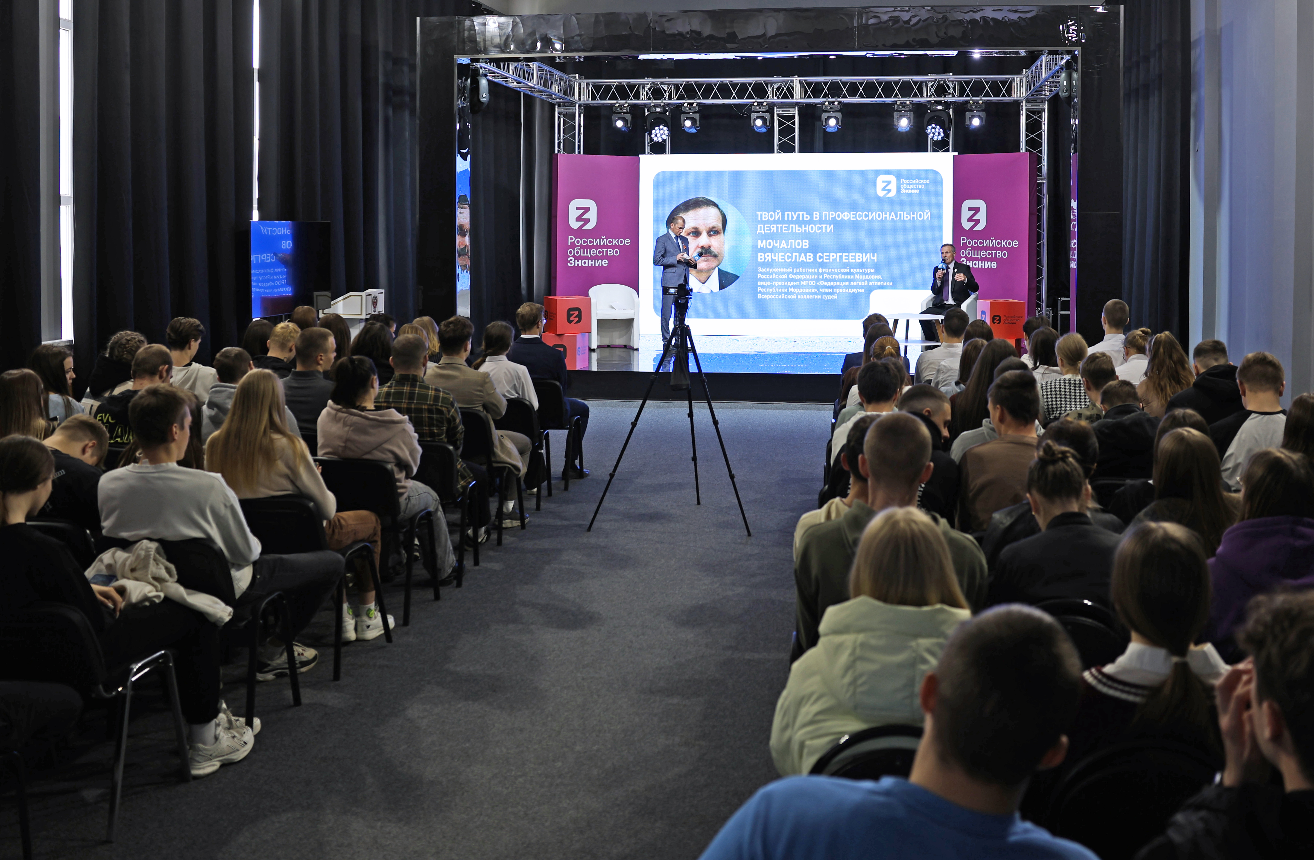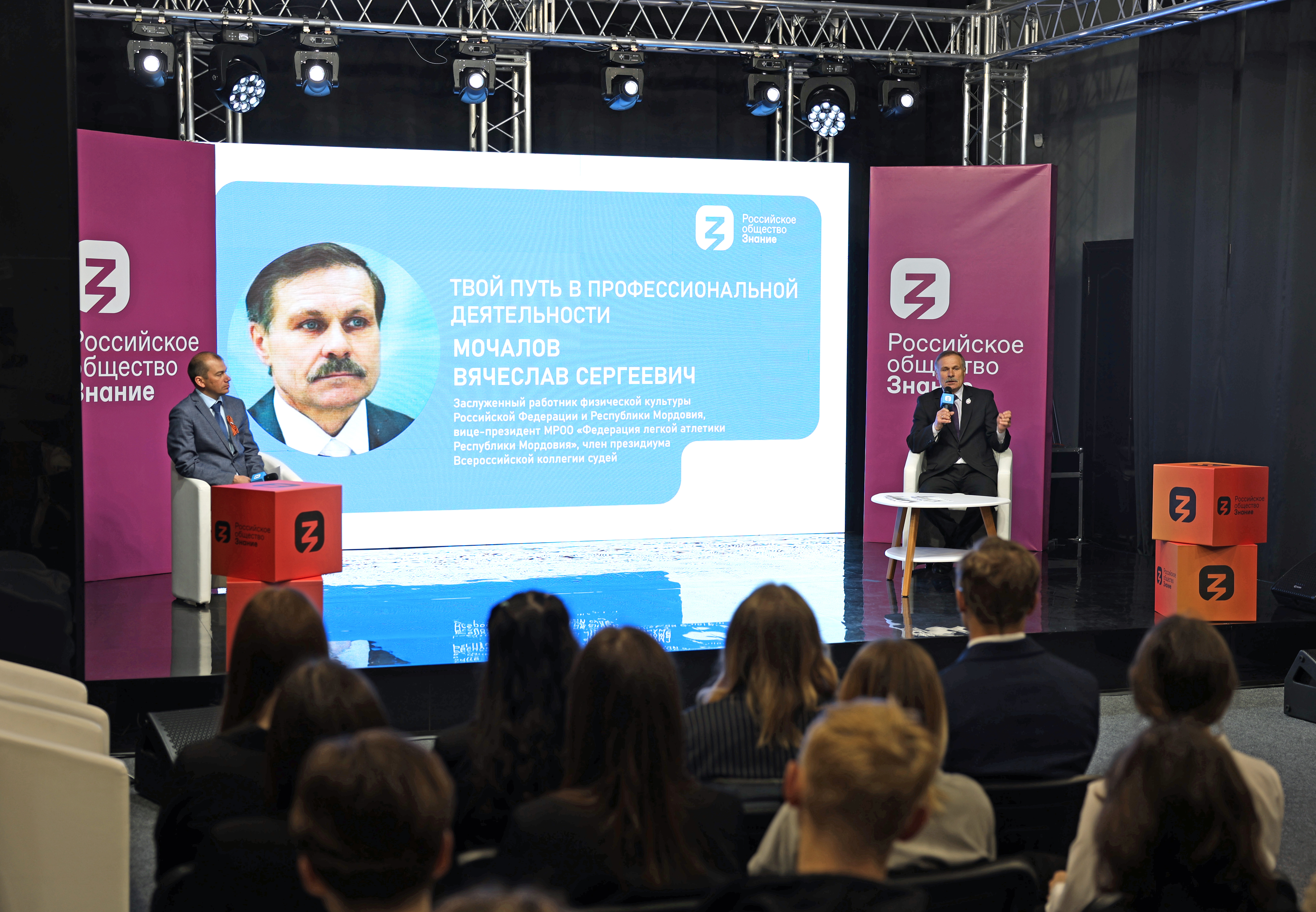 8 мая 2024 года студенты факультета физической культуры во главе с деканам факультета Сергеем Васильевичем Бакулиным встретились с заслуженным работником физической культуры Российской Федерации и Республики Мордовия, вице-президентом МРОО «Федерация легкой атлетики Республики Мордовия», членом президиума Всероссийской коллегии судей Вячеславом Сергеевичем Мочаловым на региональной площадке Российского общества «Знание».