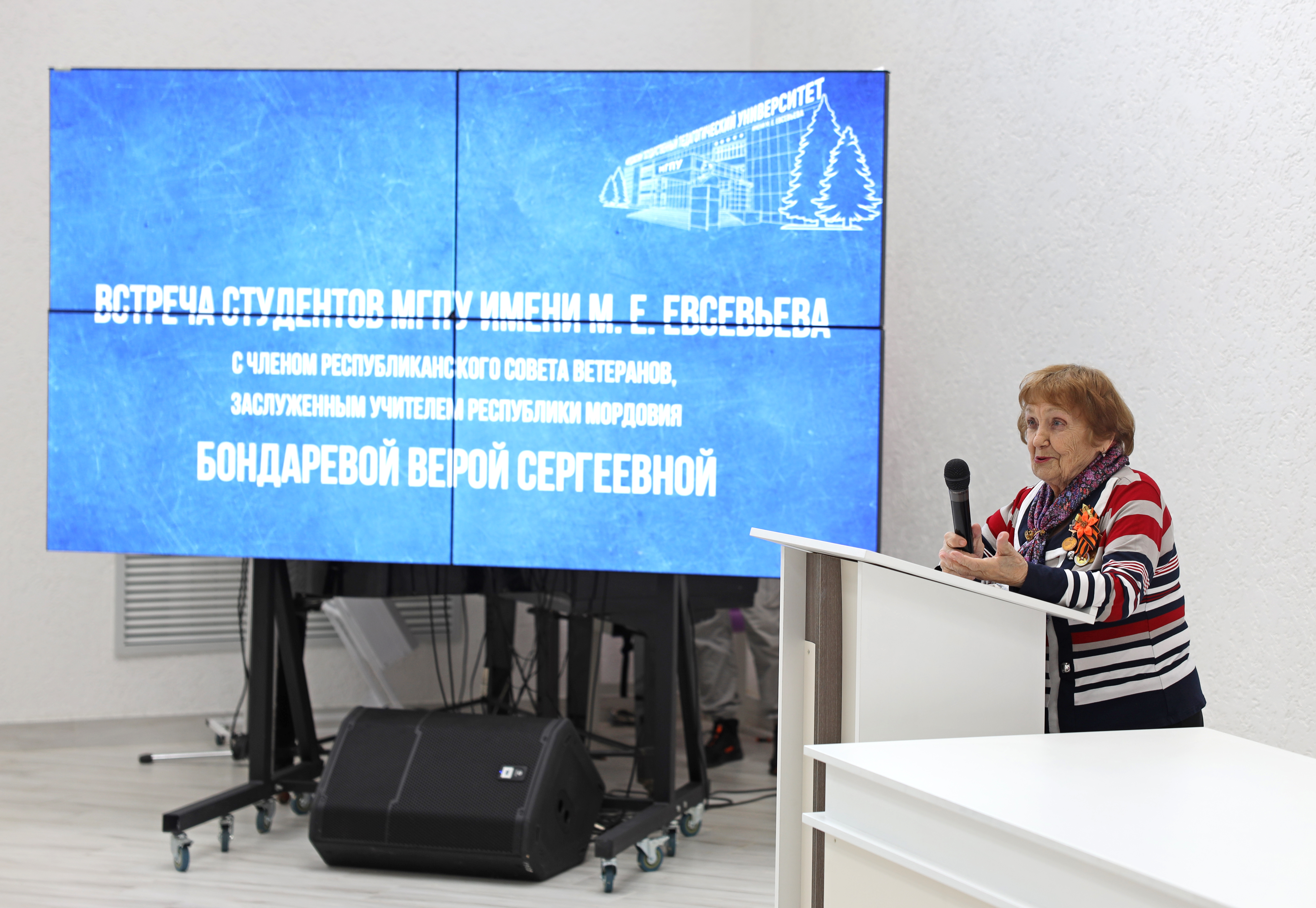 Так, 8 мая 2024 года, студенты Мордовского государственного педагогического университета встретились с майором полиции в отставке, ветераном боевых действий, участником первой и второй Чеченской войны, участником СВО Беляйкиным Александром Петровичем, членом республиканского Совета ветеранов, заслуженным учителем Бондаревой Верой Сергеевной, заместителем председателя Совета ветеранов РМ Сысуевой Надеждой Николаевной.