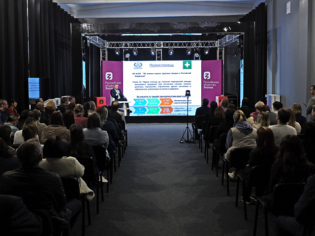 16 мая на площадке региональной студии Российского общества «Знание» состоялась вводная лекция для преподавателей и сотрудников по оказанию первой помощи кандидата медицинских наук, главного врача Республиканской клинической больницы имени С. В. Каткова Алексея Александровича Алагулова.