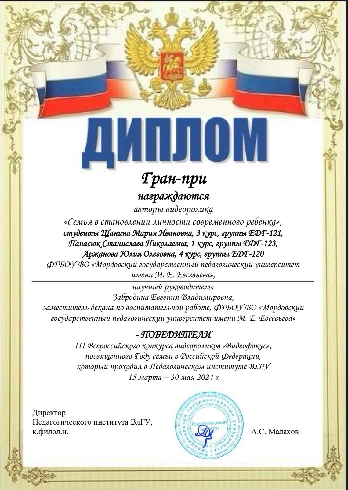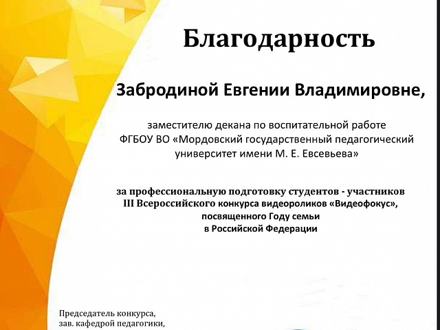 Подведены итоги III Всероссийского конкурса видеороликов, посвященном Году семьи в Российской Федерации «Видеофокус» проведенного на базе Педагогического института Владимирского государственного университета имени Александра Григорьевича и Николая Григорьевича Столетовых».