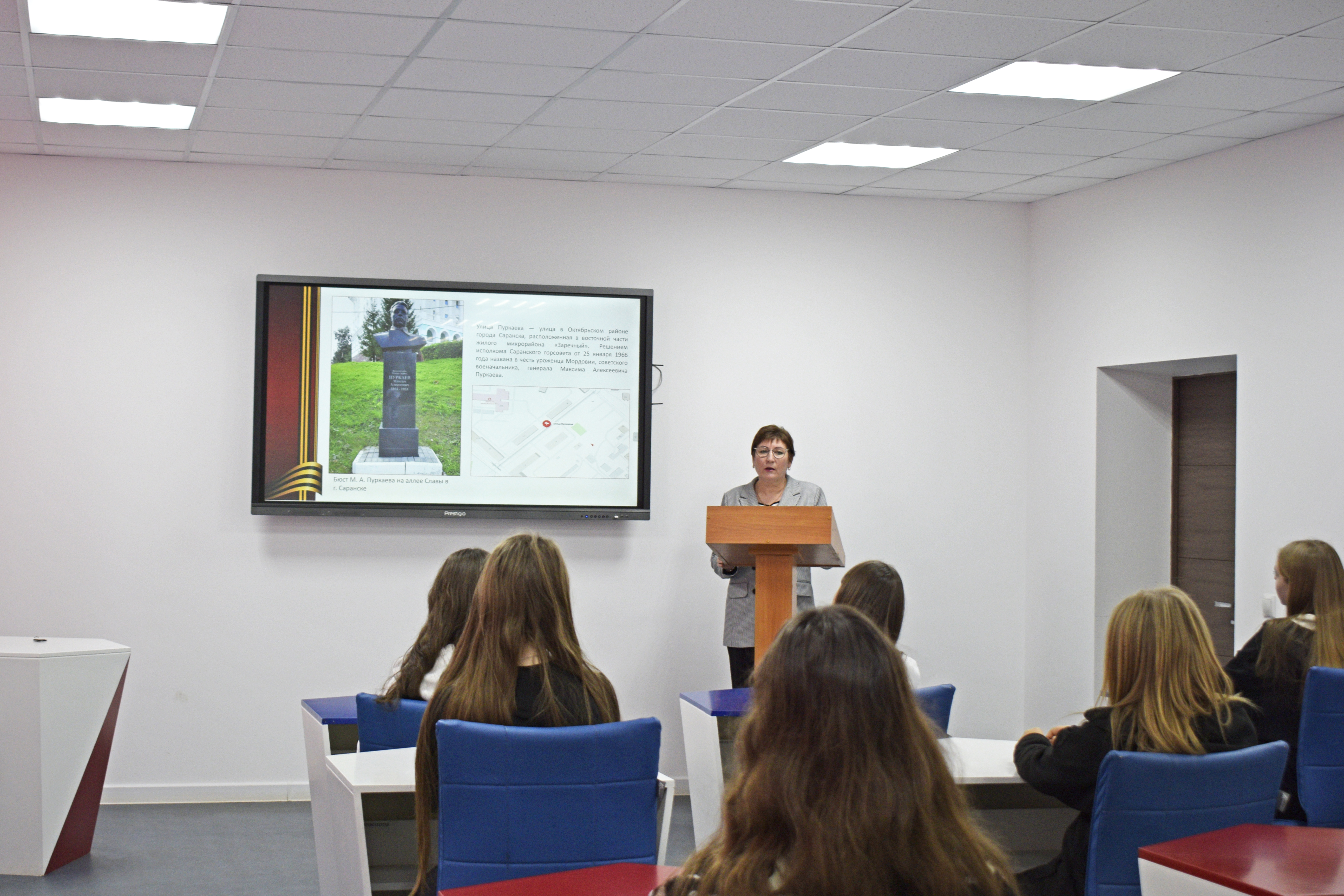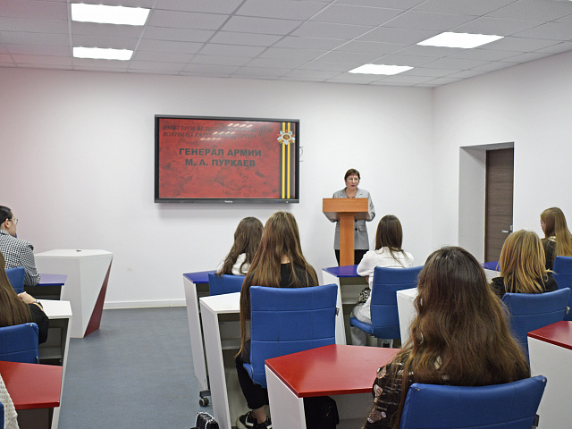 Доцент кафедры отечественной и зарубежной истории и методики обучения Р. Н. Каукина провела интерактивную лекцию «Генерал армии М. А. Пуркаев: жизнь и деятельность», приуроченную к 130-летию со дня рождения знаменитого советского военачальника. Основной целью мероприятия стало гражданско-патриотическое воспитание школьников и формирование их исторической памяти через знакомство с тематикой Великой Отечественной войны.
