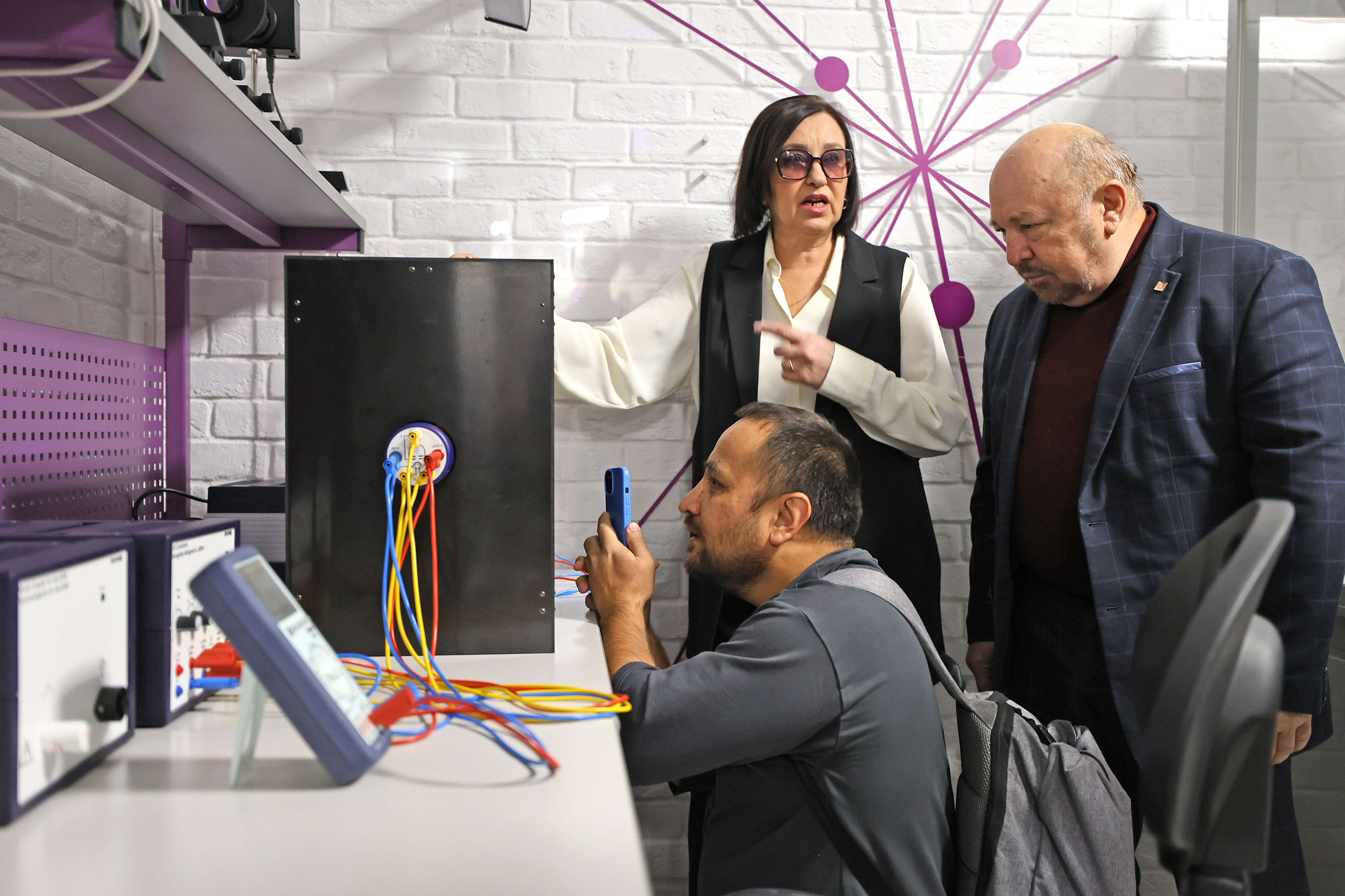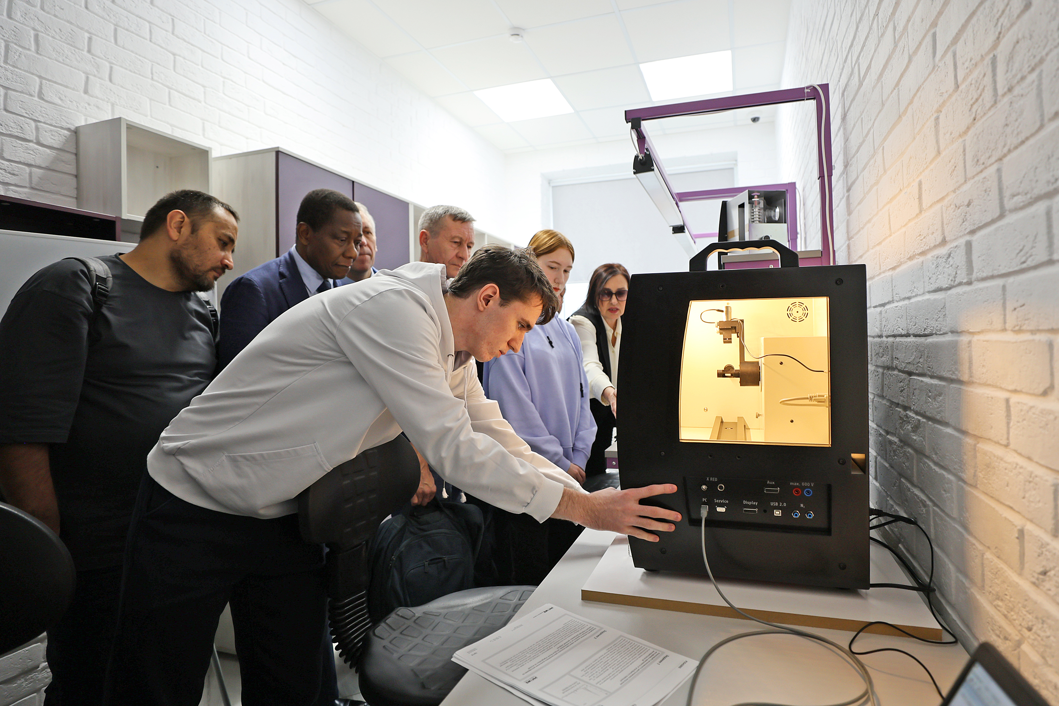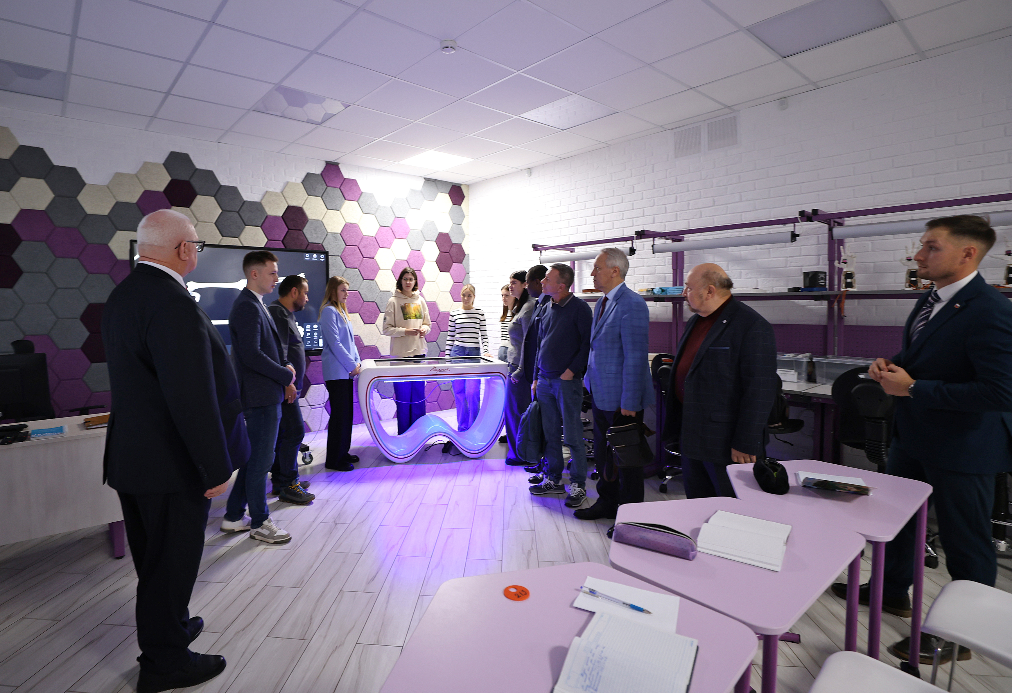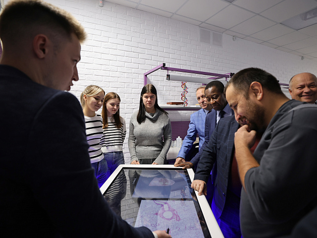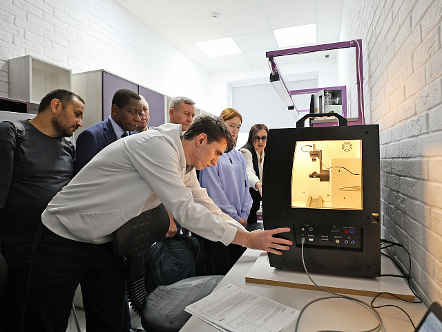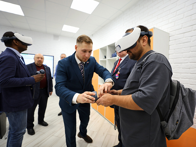 Директор технопарка Михаил Семиков продемонстрировал возможности современного оборудования, способствующего формированию технологической и цифровой грамотности студентов, в том числе при изучении языков – русского, родного и иностранных.