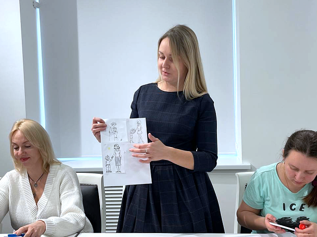 Преподаватели факультета психологии и дефектологии в интерактивной форме провели психологическую мастерскую, в рамках которой представили приёмы эффективного общения в семье, развитие родительской компетентности с учётом возраста, озвучили рекомендации для благополучного родительства. Также участники закрепили умение конструктивно договариваться и общаться со своим ребёнком в разных социальных ситуациях. Примеры упражнений включали моделирование ситуации «в магазине», где каждый родитель принимал на себя роль «родителя» и «ребёнка», а также упражнение-визуализацию «создание образа благополучной семьи», в ходе которого родители рисовали и описывали идеальный образ своей семьи, обсуждая его вместе с другими участниками.