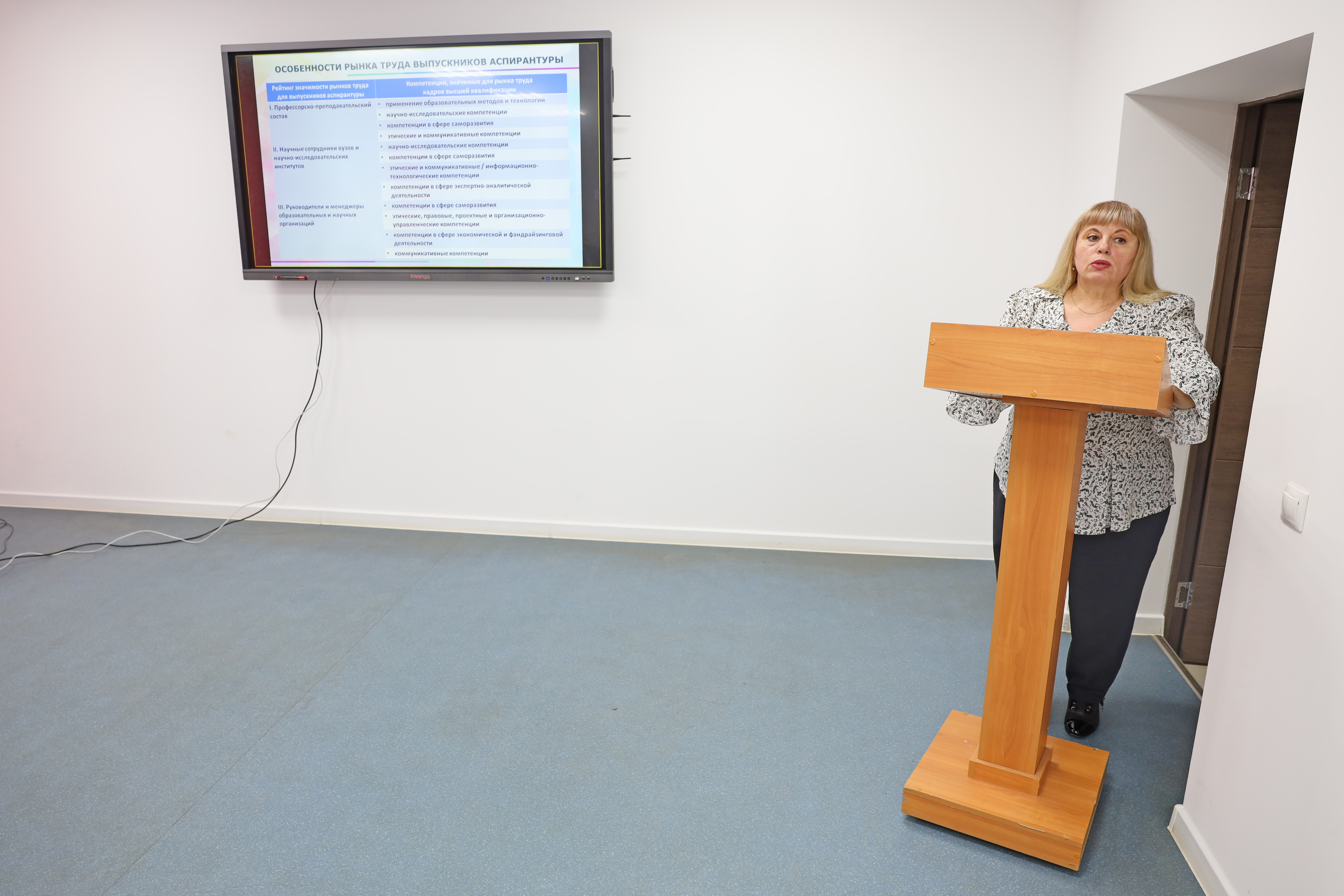 В своём докладе Ю. В. Варданян подробно остановилась на особенностях современного рынка труда для выпускников, выявила причины трудностей, с которыми сталкиваются аспиранты, связанные с нарушениями ценностного развития личности. Она также акцентировала внимание на основных факторах, влияющих на ценностно-мотивационную сферу аспирантов, и подчеркнула значимость самоорганизации в процессе научной работы.