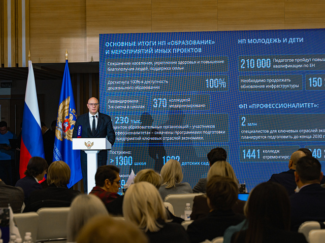Первый заместитель Руководителя Администрации Президента России Сергей Кириенко обратился к участникам совещания по видеосвязи и отметил, что в области просвещения и воспитания молодого поколения проведена колоссальная работа.