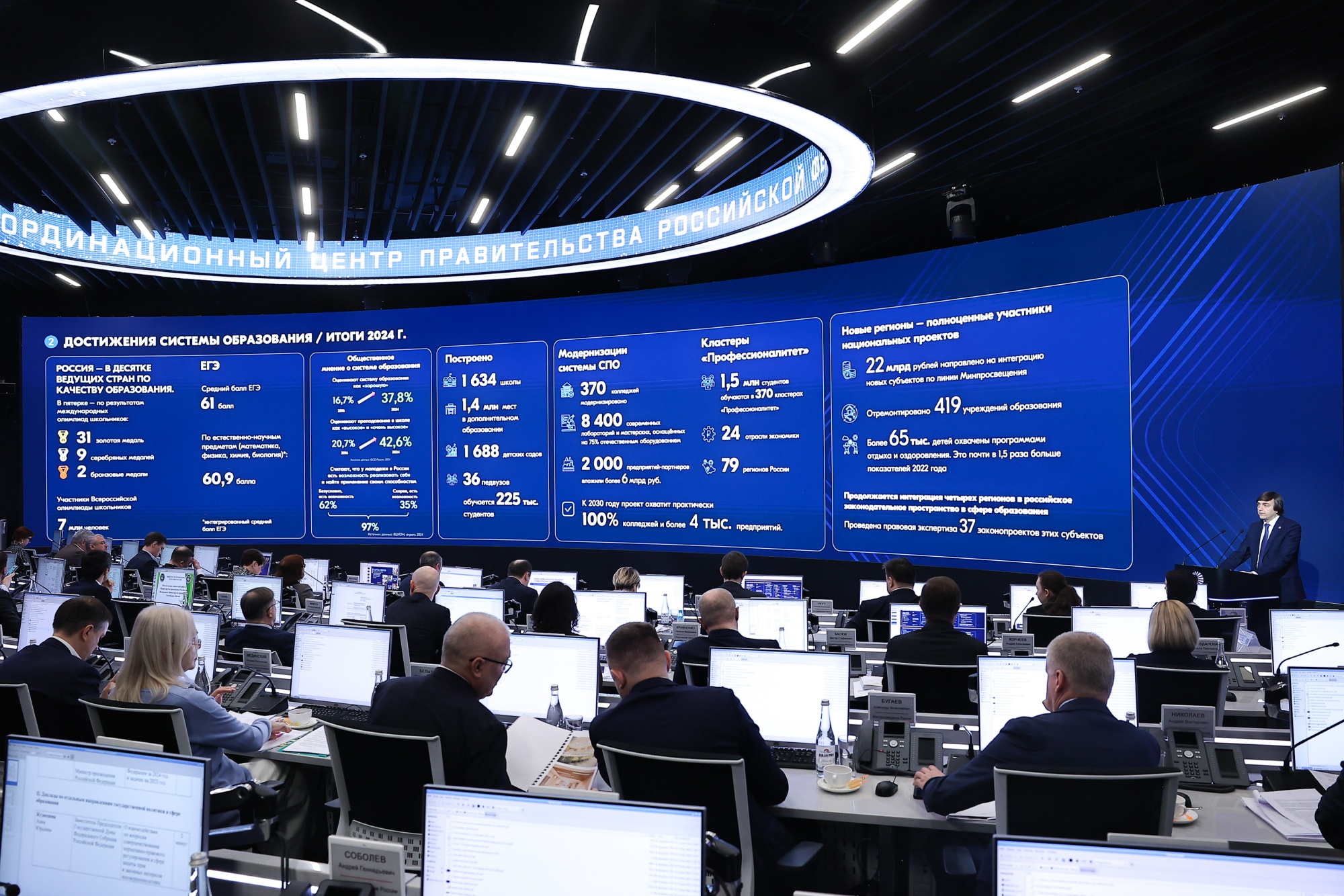 «В 2024 году завершилась реализация национального проекта «Образование», все его показатели выполнены. С превышением плановых объемов и сроков построено 1 688 детских садов, отремонтировано 4 932 школьных здания, создано 1 млн 400 тыс. мест в дополнительном образовании, ликвидирована третья смена. Сегодня мы полностью готовы к реализации новых национальных проектов «Молодежь и дети», «Семья». Нам предстоит к 2030 году обеспечить нормативное состояние всех школ. С этого года мы начали капитальные ремонты в детских садах и колледжах», – подчеркнул Министр просвещения РФ Сергей Кравцов.