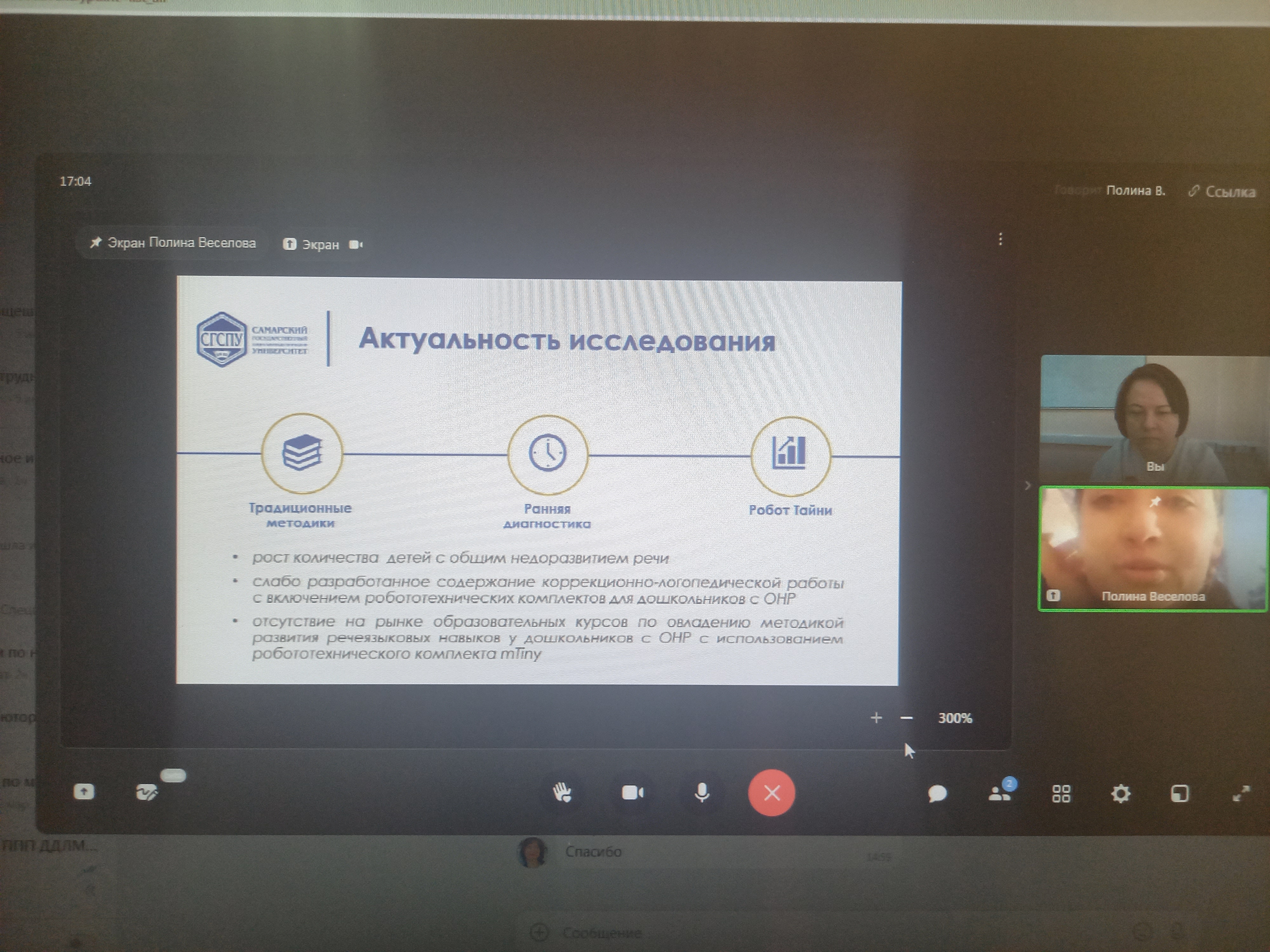 2) «Разработка УМК для учителей-логопедов по использованию робототехнического комплекта mTiny для развития речеязыковых навыков дошкольников с общим недоразвитием речи» Веселовой Полины Алексеевны, студентки Самарского государственного социально-педагогического университета,
