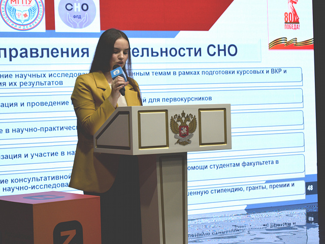 Юлия Андреевна Демяшкина, специалист управления научной и инновационной деятельности, презентуя проект «Траектория студента-исследователя в педагогическом вузе», победивший в конкурсе на предоставление субсидий из Федерального бюджета на поддержку студенческих научных сообществ, проводимом Министерством науки и высшего образования Российской Федерации, представила мероприятия, планируемые на предстоящий учебный год.