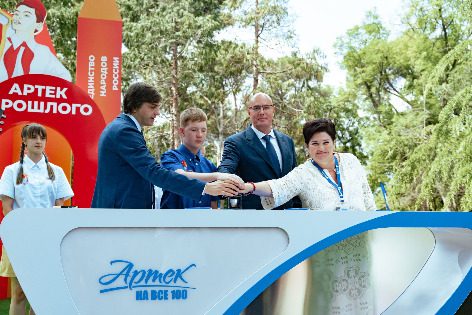 «Быть участниками юбилейной смены – большая честь и привилегия. Вы должны унести в своих сердцах любовь к нашей стране, к «Артеку», познакомиться с ребятами, с которыми вы будете идти по жизни, которые навсегда останутся артековцами и будут с вами. Здесь вы учитесь дружить, работать и приносить пользу нашей стране и своим семьям. Это главное, чему вы должны научиться здесь. «Артек» уже больше 100 лет – теперь можно говорить так – является международным эталоном лучшего детского отдыха. С юбилеем, «Артек»! С праздником, ребята!» – обратился к участникам Дмитрий Чернышенко.