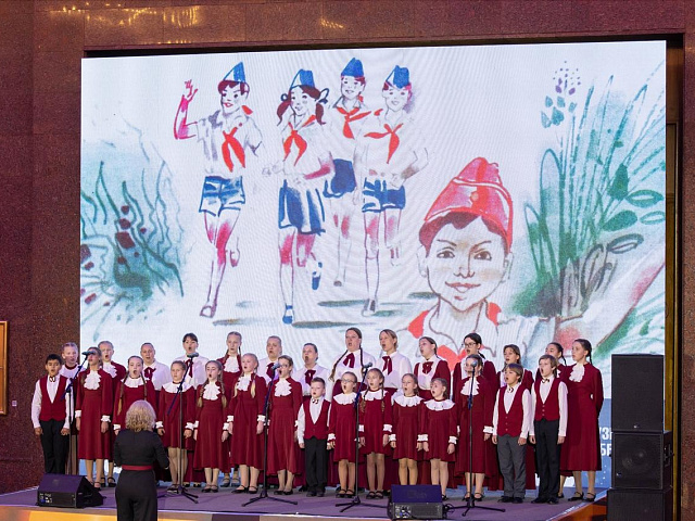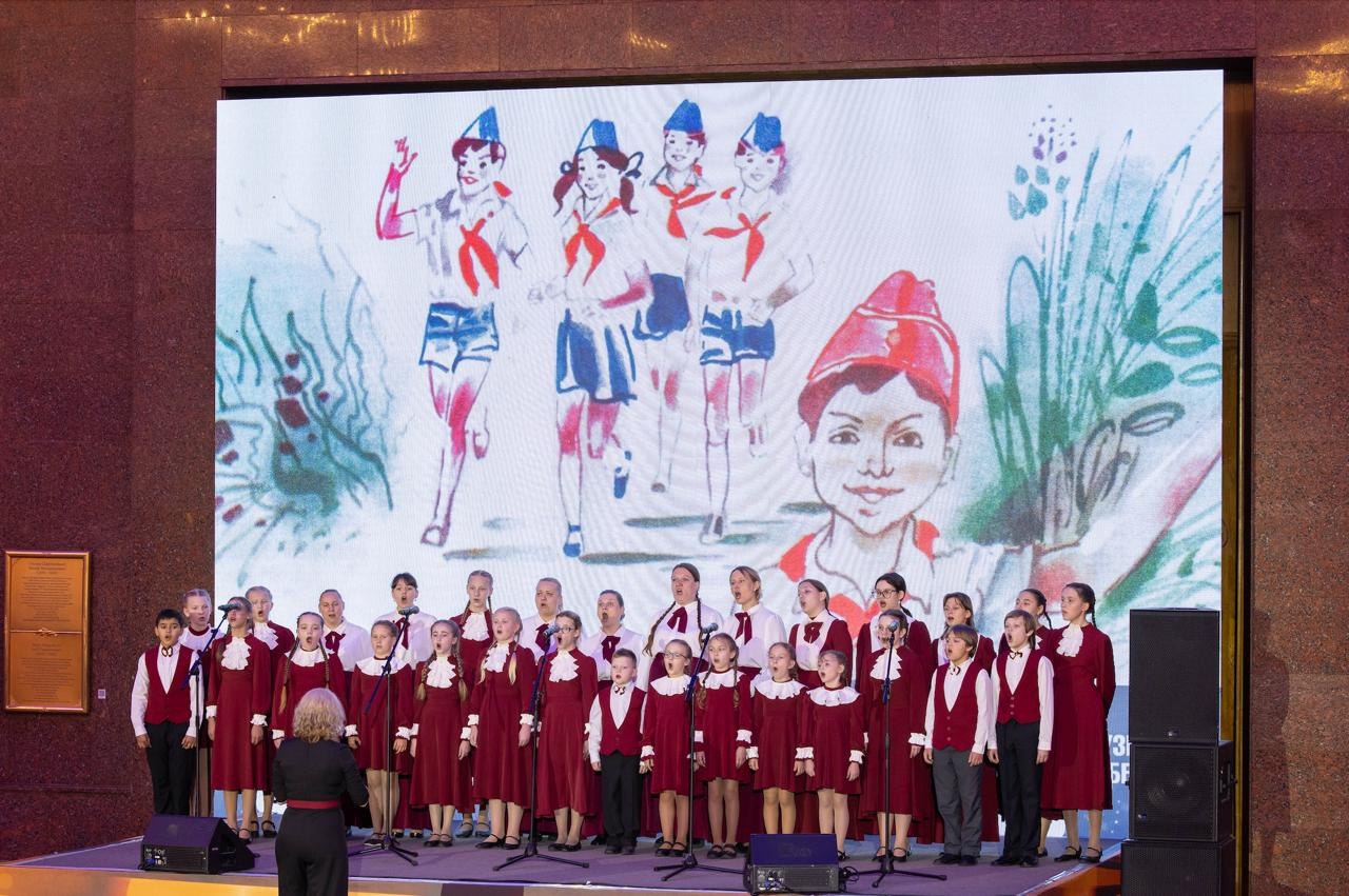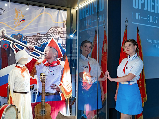 Также на открытие экспозиции приехали участники смен «Орленка» разных возрастов. Посетителей экспозиции приветствовали лучшие детские творческие коллективы страны. Большой детский хор имени В.С. Попова исполнил песню «Орлята учатся летать», написанную в 1965 году композитором Александрой Пахмутовой и поэтом Николаем Добронравовым. Произведение стало гимном детского лагеря «Орленок».