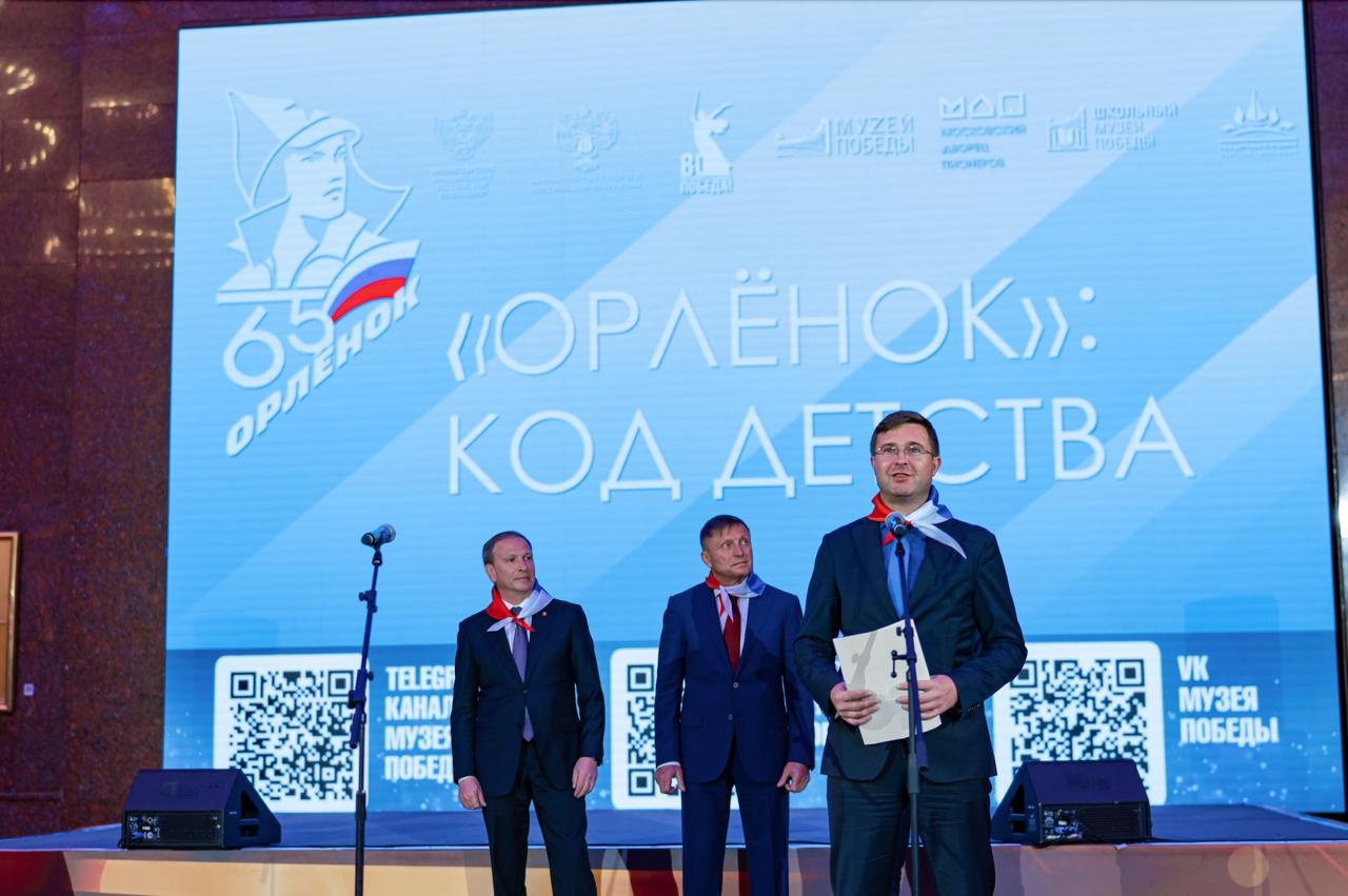 В Музее Победы состоялась торжественная церемония открытия выставки «Орленок»: Код детства». Экспозиция посвящена истории Всероссийского детского центра с момента его основания в 1960 году до наших дней. Участие в мероприятии принял статс-секретарь – заместитель Министра просвещения РФ Андрей Корнеев.