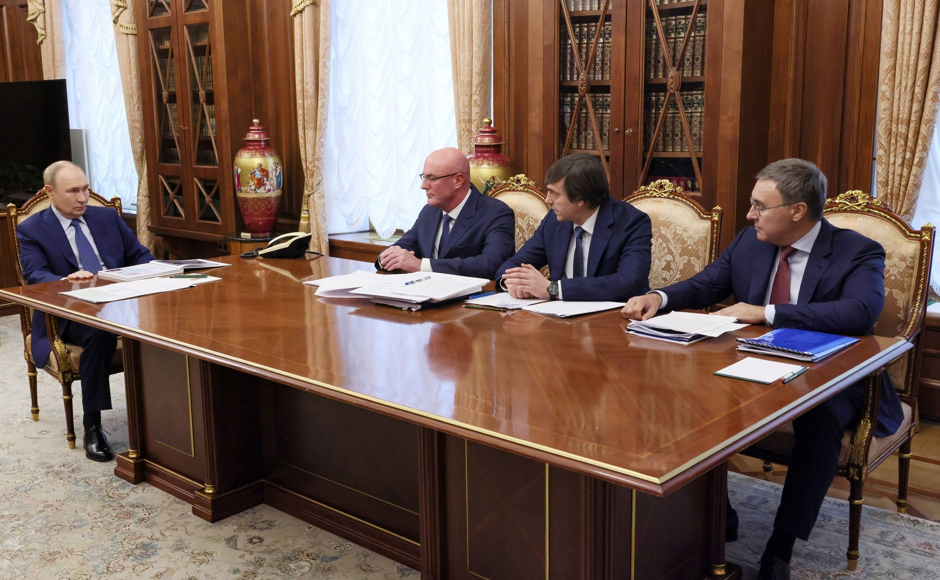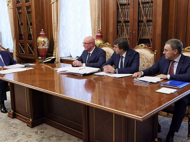 Президент России Владимир Путин провел в Кремле совещание, посвященное вопросам образования. В нем приняли участие заместитель Председателя Правительства России Дмитрий Чернышенко, Министр просвещения РФ Сергей Кравцов и Министр науки и высшего образования РФ Валерий Фальков.