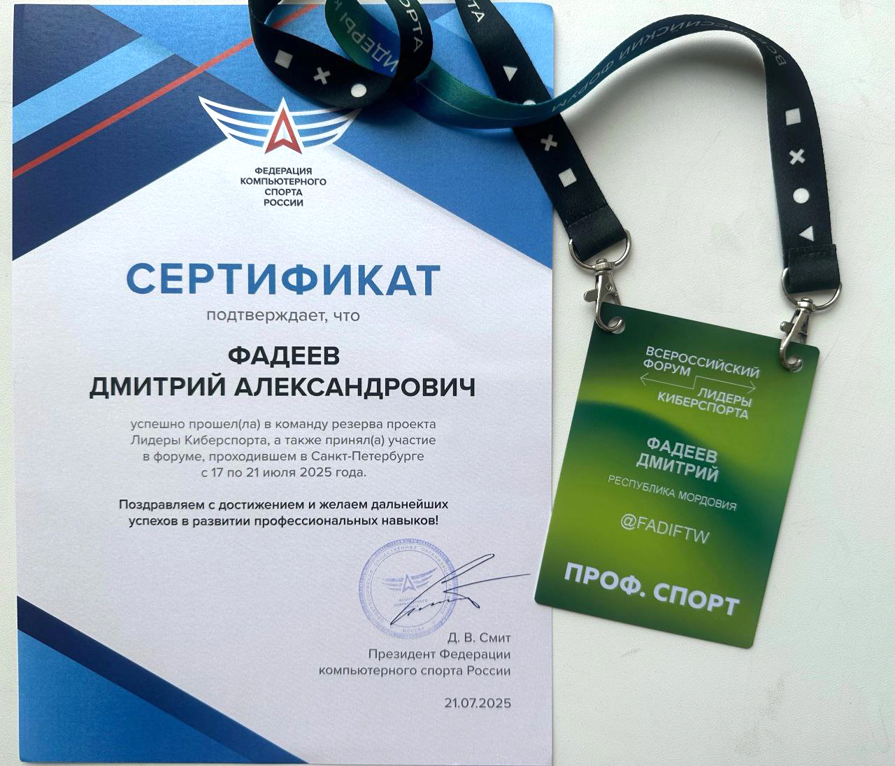 Студент 2 курса факультета физической культуры Мордовского государственного педагогического университета им. М. Е. Евсевьева Фадеев Дмитрий Александрович успешно представил Республику Мордовия на Всероссийском форуме «Лидеры киберспорта 2025», проходившем с 18 по 21 июля на базе Университета ИТМО в Санкт-Петербурге.