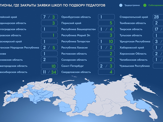 В Ставропольском крае закрыты все 28 поступивших вакансий, а в Новосибирской области и Татарстане активно проводятся собеседования с кандидатами.
