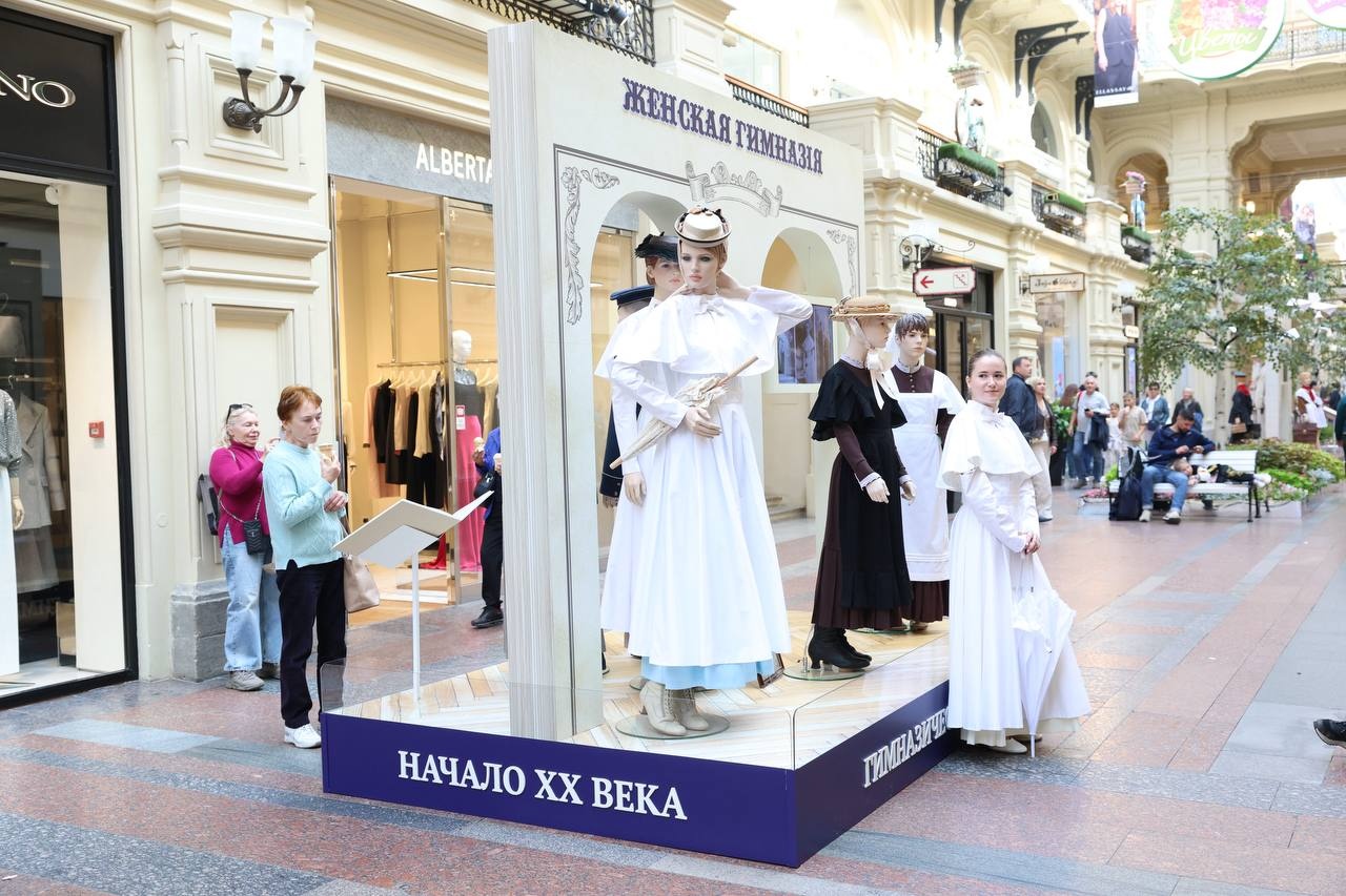 В Москве в Государственном универсальном магазине 28 августа открылась выставка «История школьной формы 1900–2025». Стенды, размещенные на 1-й линии, посетил Министр просвещения РФ Сергей Кравцов.