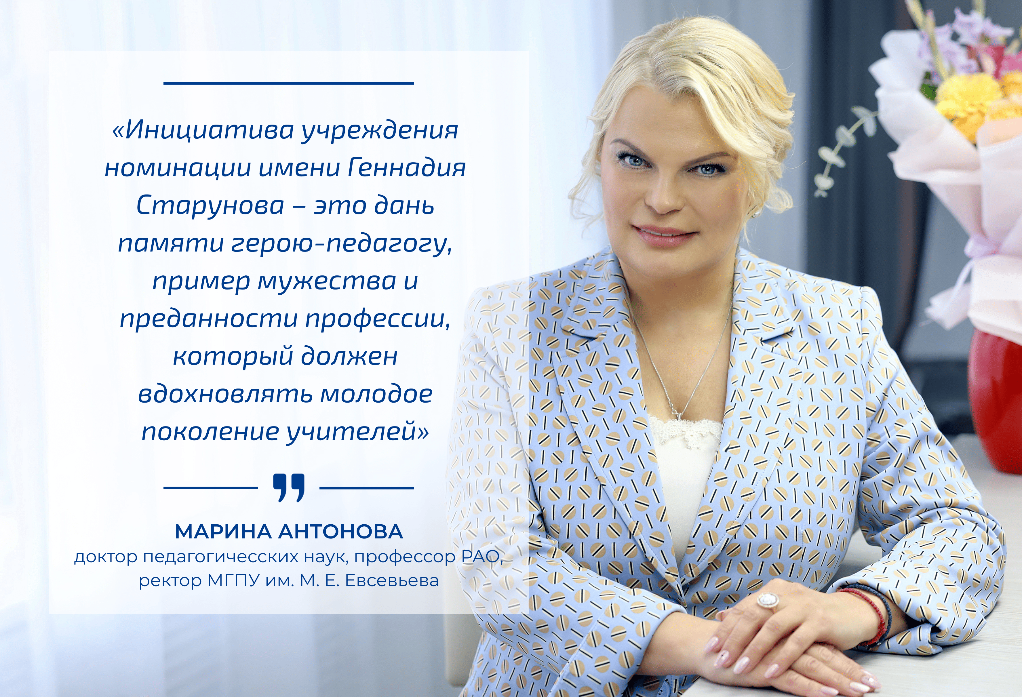 «Участие в работе жюри Всероссийского конкурса «Учитель года России» – это огромная ответственность и вместе с тем уникальная возможность увидеть лучшие педагогические практики страны, оценить инновационные подходы и обменяться опытом с ведущими экспертами в области образования. Конкурс является мощным стимулом для профессионального роста педагогов, площадкой для рождения новых идей и проектов, направленных на повышение качества образования в России. Инициатива учреждения номинации имени Геннадия Старунова – это дань памяти герою-педагогу, пример мужества и преданности профессии, который должен вдохновлять молодое поколение учителей».