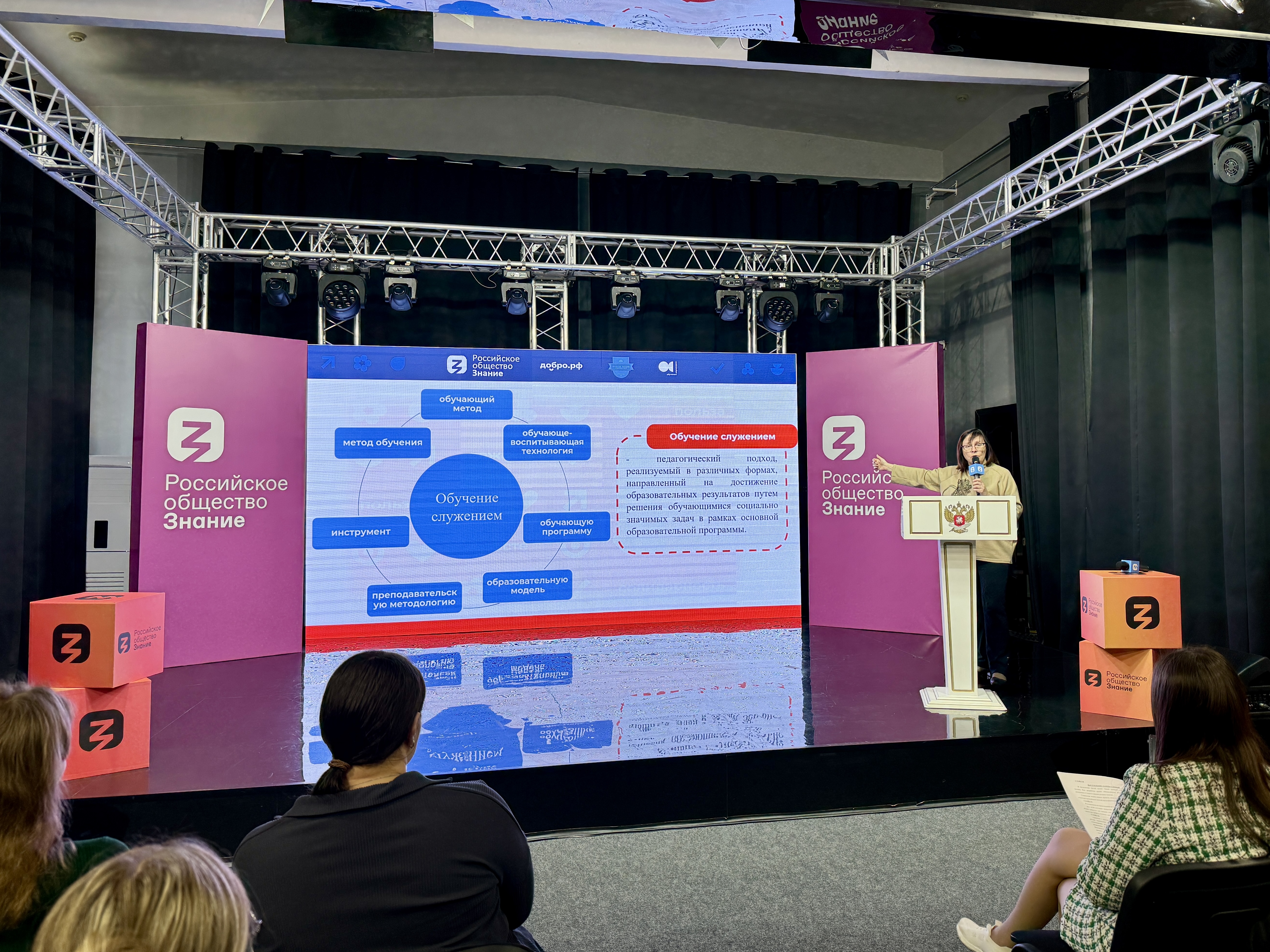 Сегодня «обучение служением» понимается как педагогический подход, реализуемый в различных формах (проектно-ориентированная дисциплина, подготовка ВКР, практическая подготовка и др.), направленный на достижение образовательных результатов путем решения обучающимися (в нашем случае студентами) социально-значимых задач, что обеспечивает определенный вклад в общество и глубокое освоение образовательной программы, а также осознание влияния своей будущей профессии на окружающий мир.