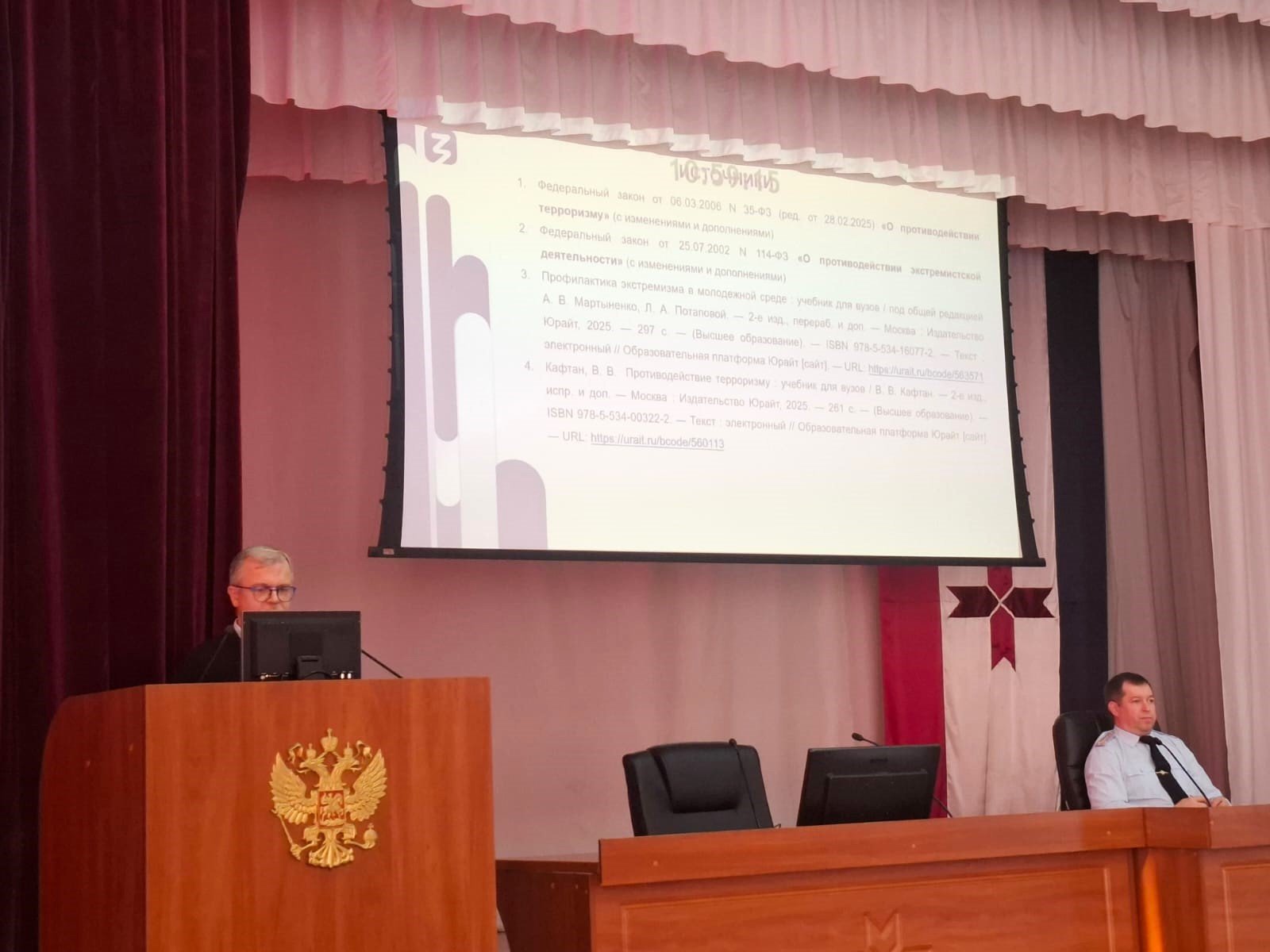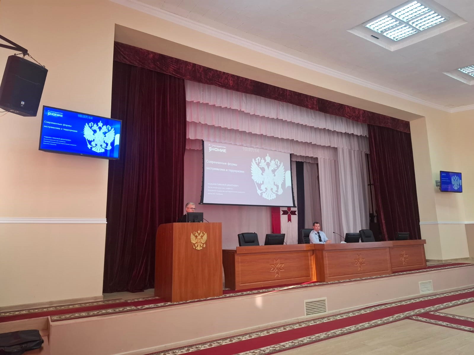 7 октября 2025 года Тимофей Дмитриевич Надькин, доктор исторических наук, профессор, и. о. заведующего кафедрой отечественной и зарубежной истории и методики обучения в рамках проекта Российского общества «Знание» «Знание. Государство» выступил перед сотрудниками МВД по Республике Мордовия с лекцией «Современные формы экстремизма и терроризма».