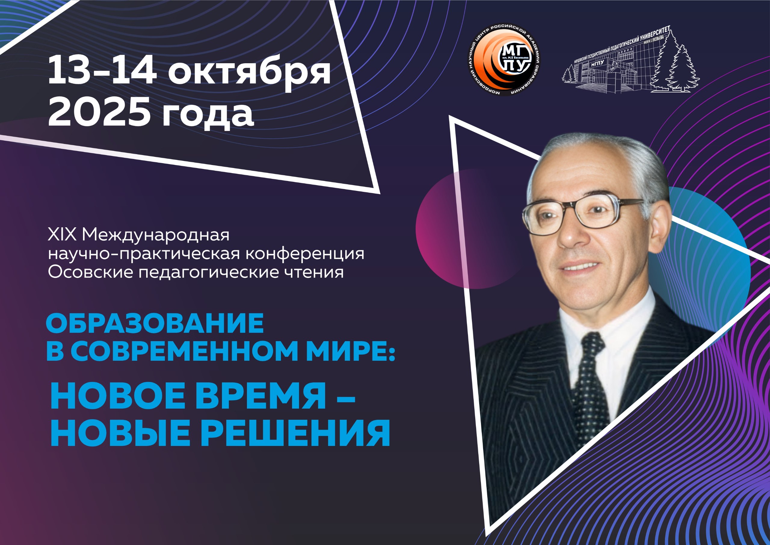 13-14 октября 2025 года в Мордовском государственном педагогическом университете имени М. Е. Евсевьева состоится XIX Международная научно-практическая конференция – Осовские педагогические чтения «Образование в современном мире: новое время – новые решения», посвященная 95-летию со дня рождения доктора педагогических наук, профессора, члена–корреспондента РАО Е. Г. Осовского.
