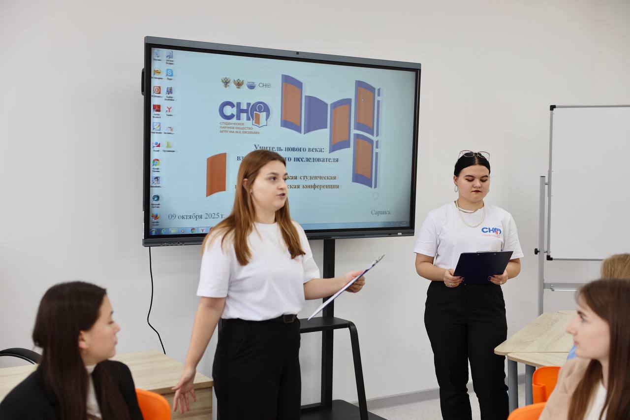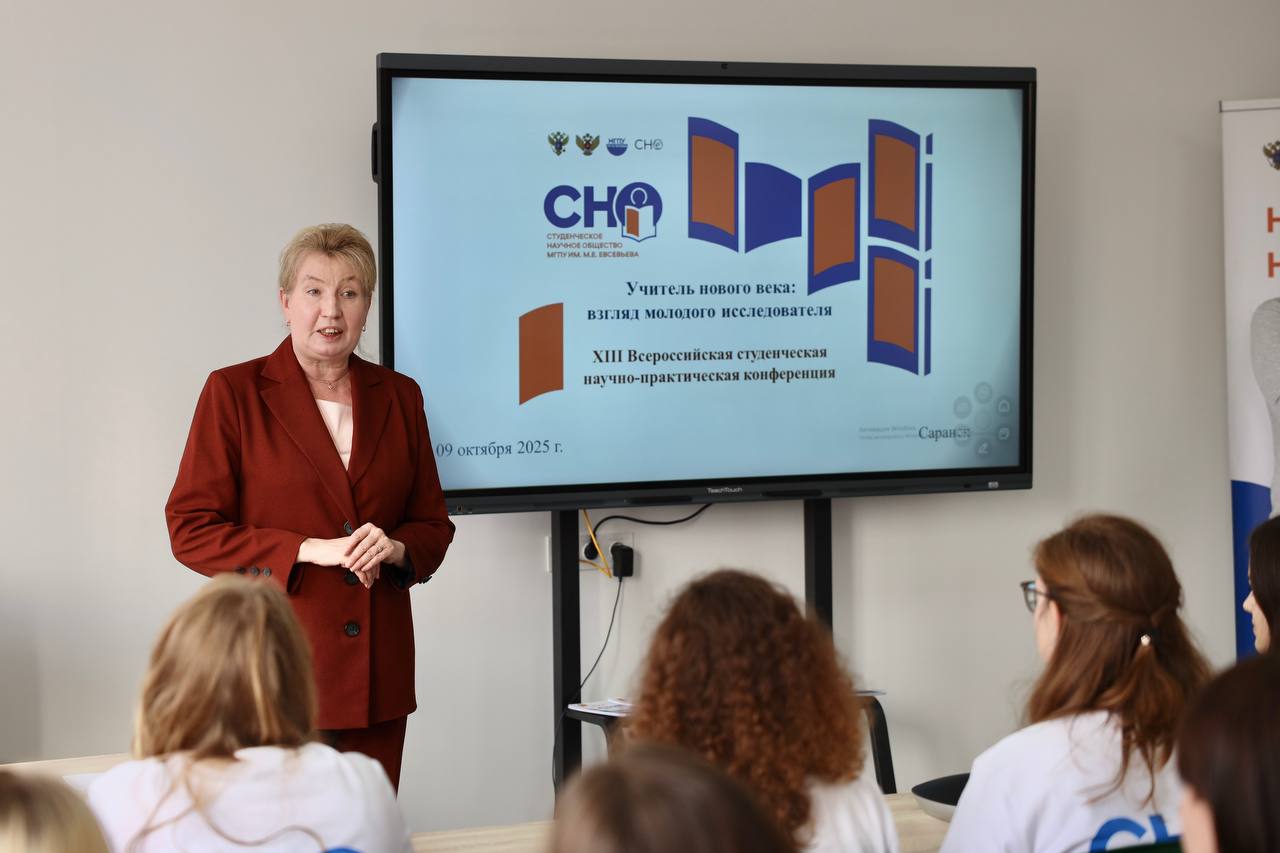 9 октября 2025 года в Мордовском государственном педагогическом университете имени М. Е. Евсевьева на площадке комплексного образовательно-воспитательного кластера по подготовке педагогов дошкольного и начального образования состоялась ХIII Всероссийская студенческая научно-практическая конференция «Учитель нового века: взгляд молодого исследователя». В конференции приняли участие более 300 человек из 14 российских вузов: студенты, магистранты и аспиранты из Москвы, Владивостока, Саранска, Йошкар-Олы, Нижнего Новгорода, Глазова, Рязани, Пензы, Ульяновска и др. Важно отметить, что участники конференции разделяют позицию министра просвещения России Сергея Кравцова, который заявляет: «Современный учитель должен быть примером для учеников».