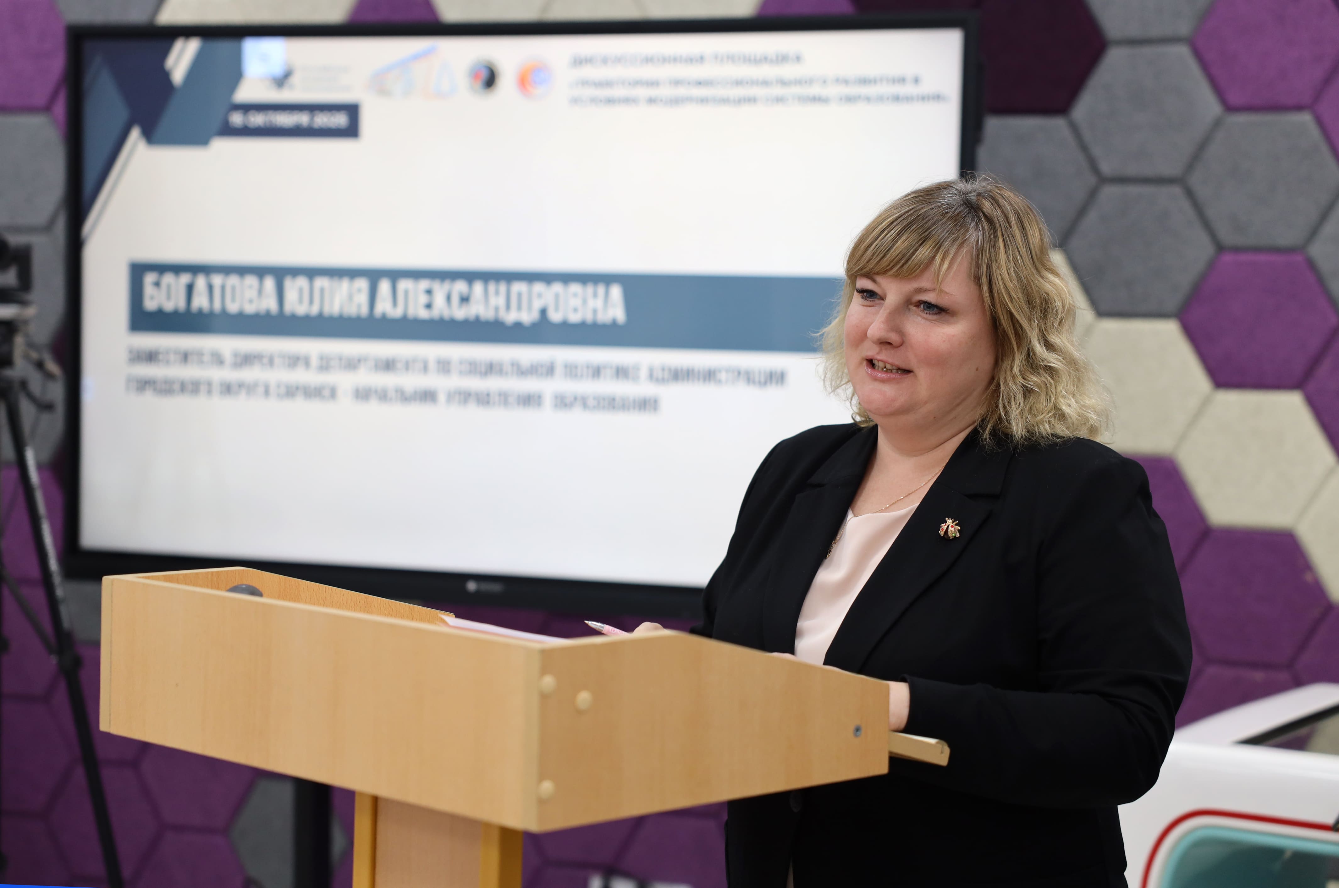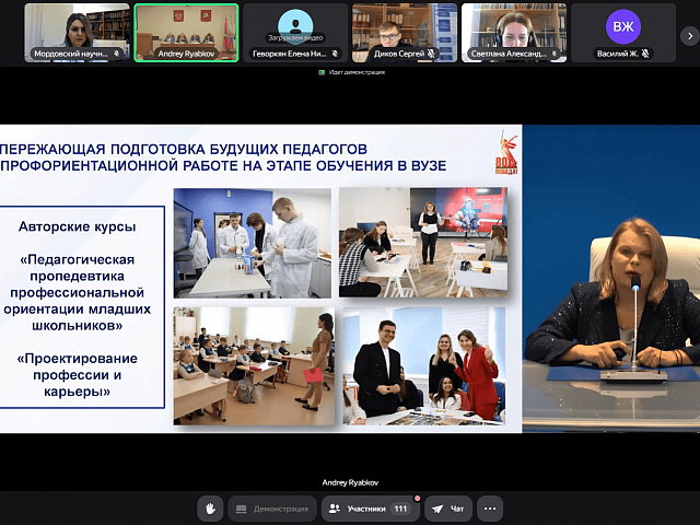 На направлении развития связей между образовательными организациями и ключевыми благополучателями профессиональной ориентации (предприятия-работодатели, семьи обучающихся, органы муниципального самоуправления, общественные организации) в контексте разработки и обновления документов, регулирующих воспитательную работу и молодежную политику в Республике Мордовия и г. о. Саранск заострила свое внимание заместитель директора Департамента по социальной политике - начальник управления образования г. о. Саранск Ю. А. Богатова.
