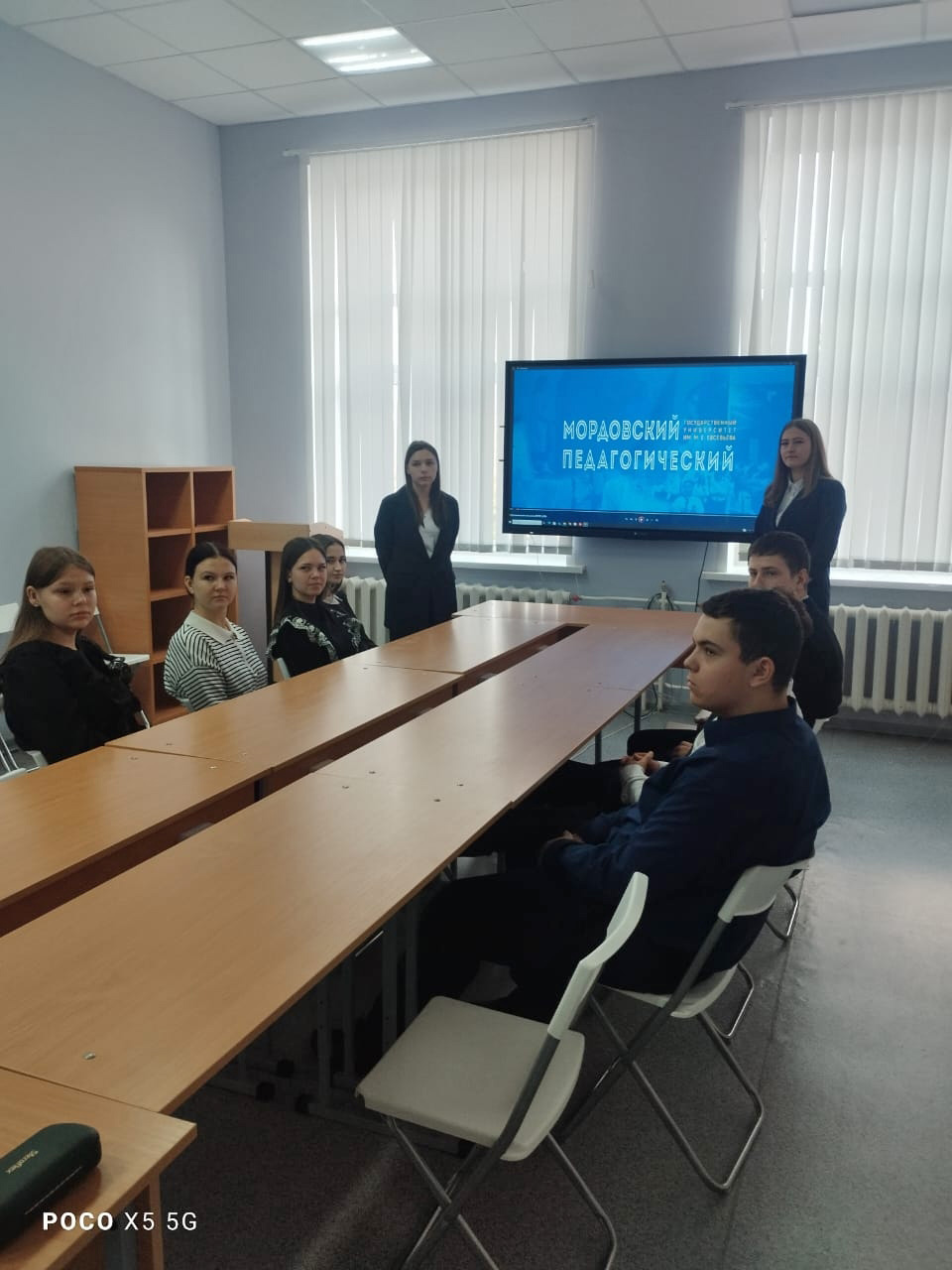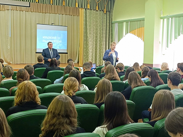 24 октября преподаватели кафедры дошкольного и начального образования, доценты Щемерова Н. Н. и Киркина Е. Н., вместе со студентами университета посетили МАОУ «Козловская средняя школа» и МБОУ «Поселковская средняя школа № 1» имени Героя Советского Союза Зайцева Б. М. в Атяшевском муниципальном районе. В ходе встречи они рассказали одиннадцатиклассникам об особенностях педагогической профессии, богатой истории и структуре университета, а также подробно осветили все тонкости поступления, условия обучения и возможности внеучебной деятельности студентов.