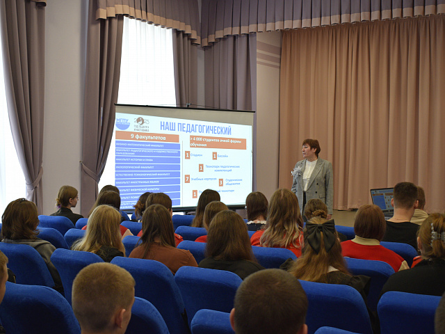 Программа поездки была насыщенной и направлена на знакомство школьников с преимуществами получения высшего педагогического образования в МГПУ им. М. Е. Евсевьева, а также с направлениями и профилями подготовки, реализуемыми в университете. Доценты кафедры отечественной и зарубежной истории и методики обучения Р. Н. Каукина и И. К. Корякова представили потенциальным абитуриентам подробную информацию обо всех возможностях, которые предоставляет МГПУ.
