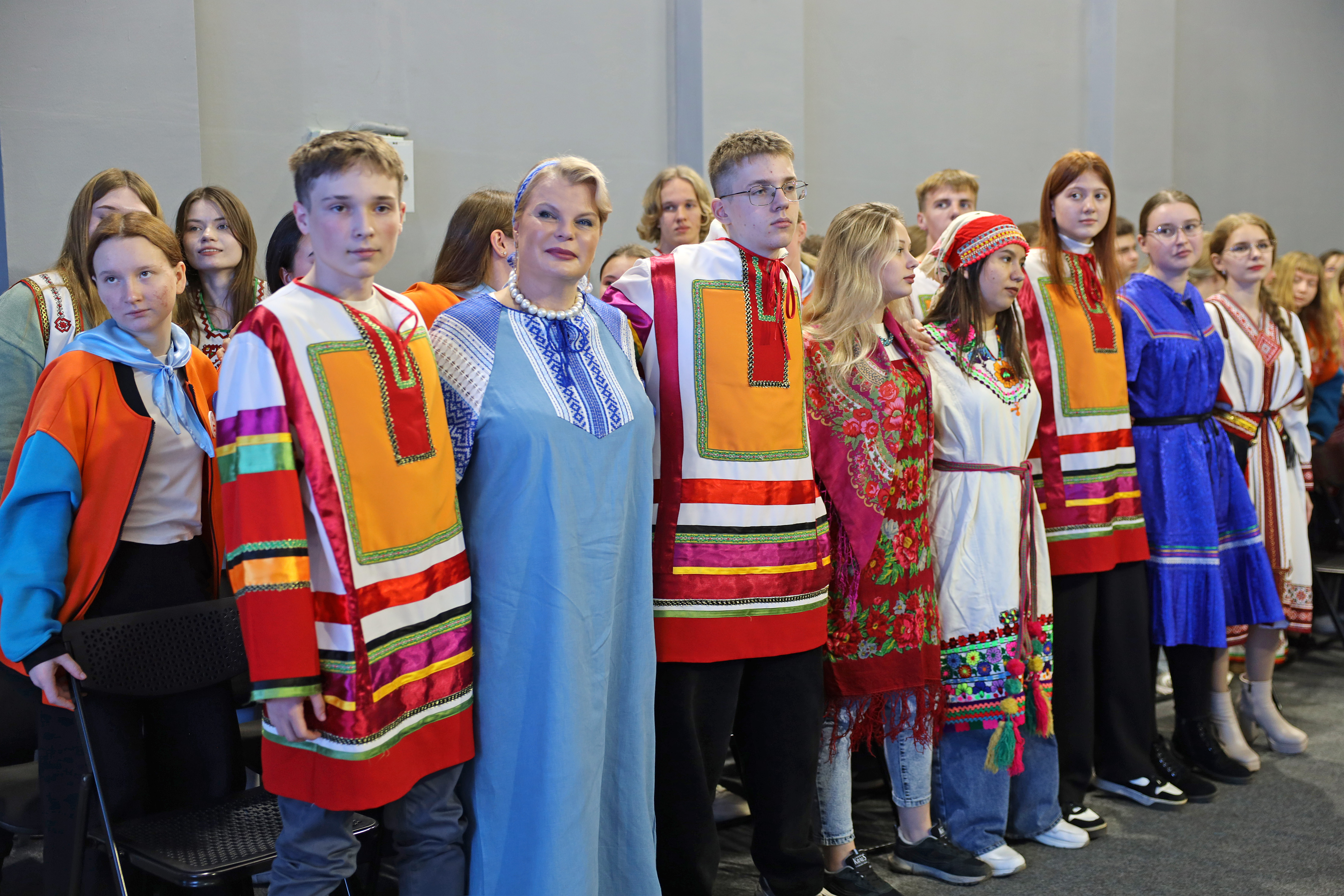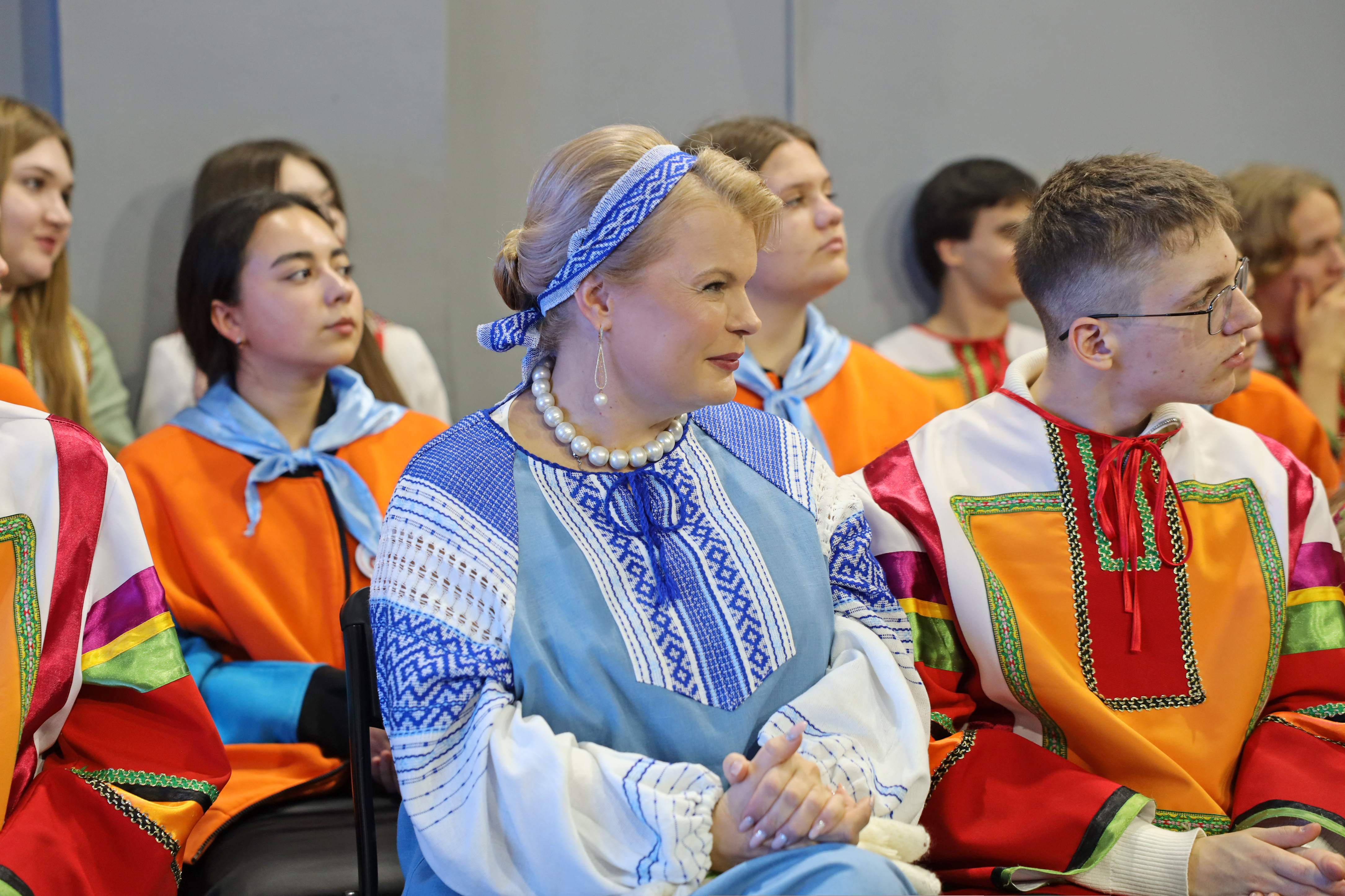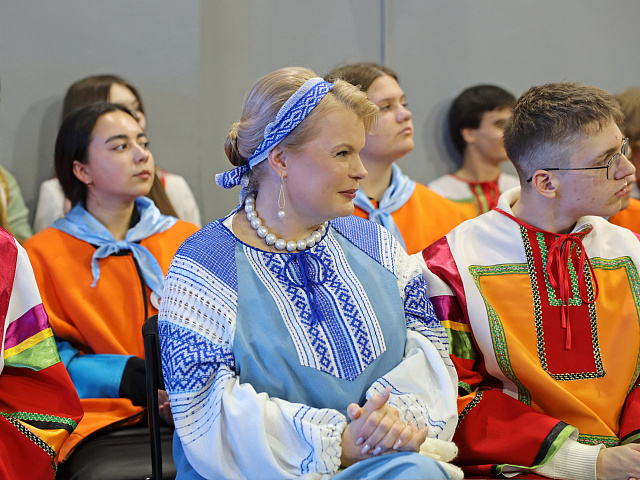 Студенты, облаченные в красочные национальные костюмы, вместе с ректором вуза Мариной Владимировной Антоновой, выбравшей в этот день русский народный наряд, создали атмосферу тепла и единения.