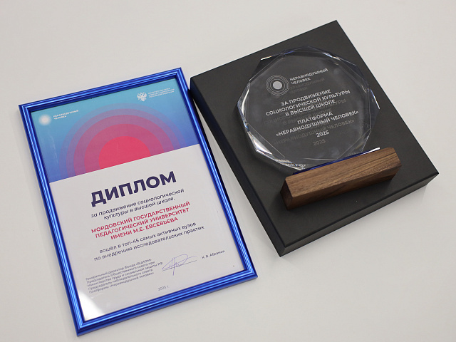 Мордовский государственный педагогический университет им. М. Е. Евсевьева вошел в ТОП-45 самых активных университетов по внедрению исследовательских практик и занял почетное 8 место из 573 участников проекта. Сформированный рейтинг был объявлен на «Форуме университетской социологии – 2025. Социология доверия», проходившем 15-16 декабря в Москве на базе Президентской академии.