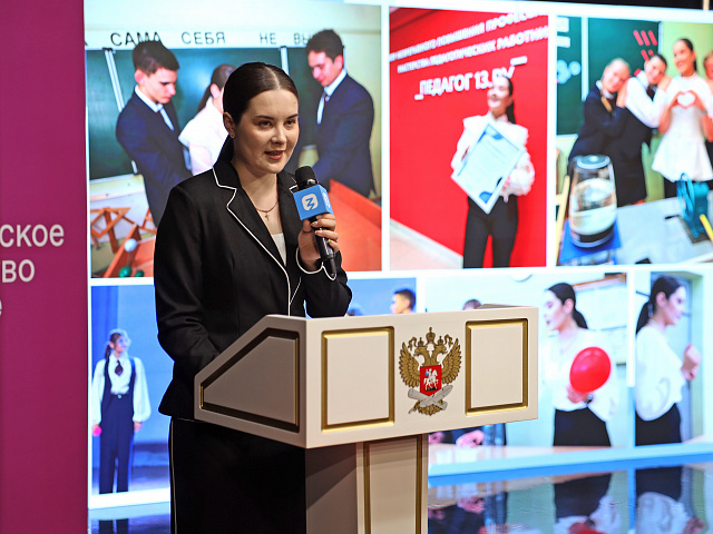 Полина Никонова поделилась с собравшимися своим опытом участия в проекте «Классная тема!», рассказала о своей работе в школе, о трудностях и радостях профессии учителя, а также дала ценные советы будущим педагогам. В своем выступлении она подчеркнула особую роль современных методов обучения, включая детские технопарки, школьные кванториумы и инженерные школы.