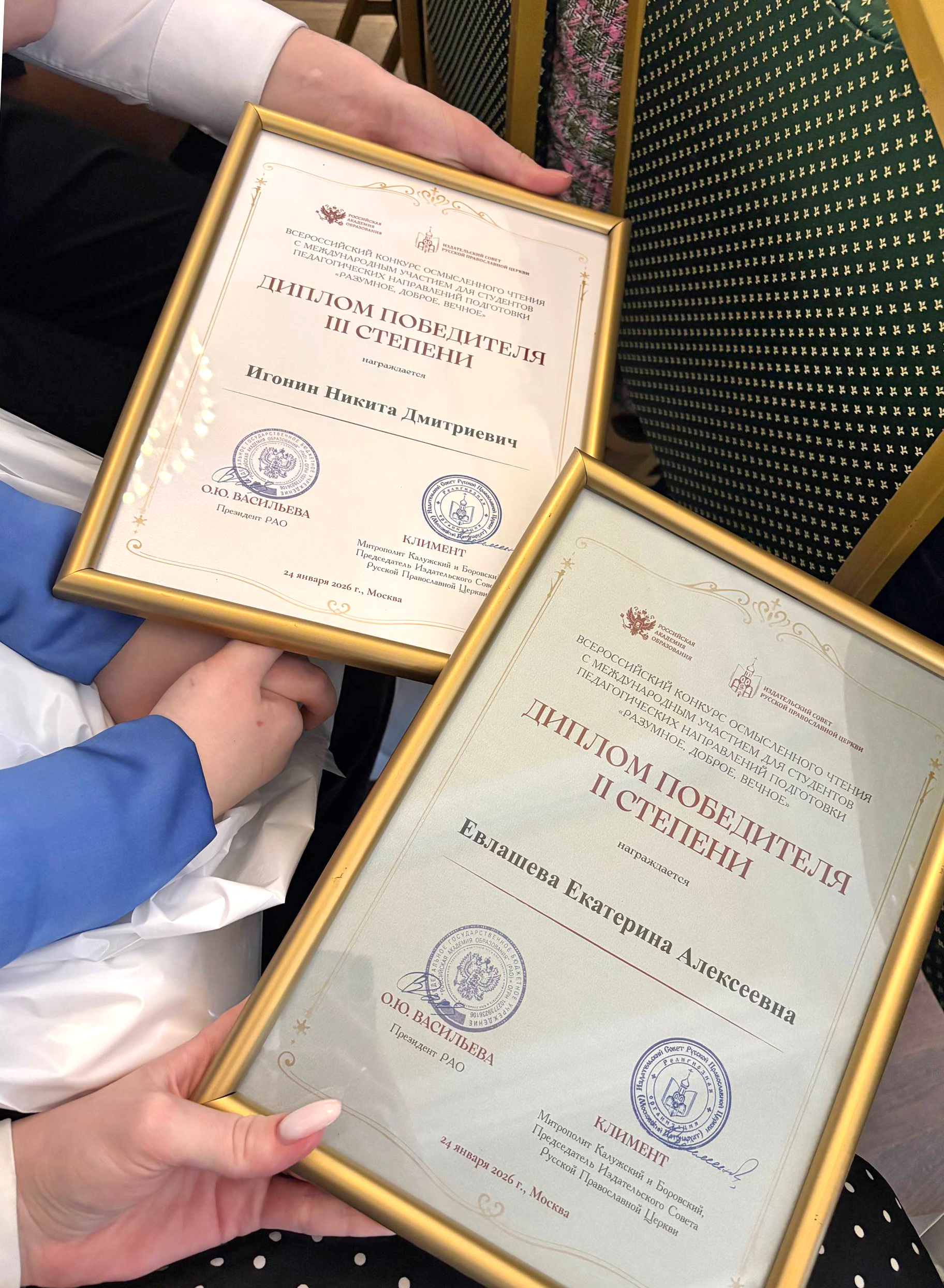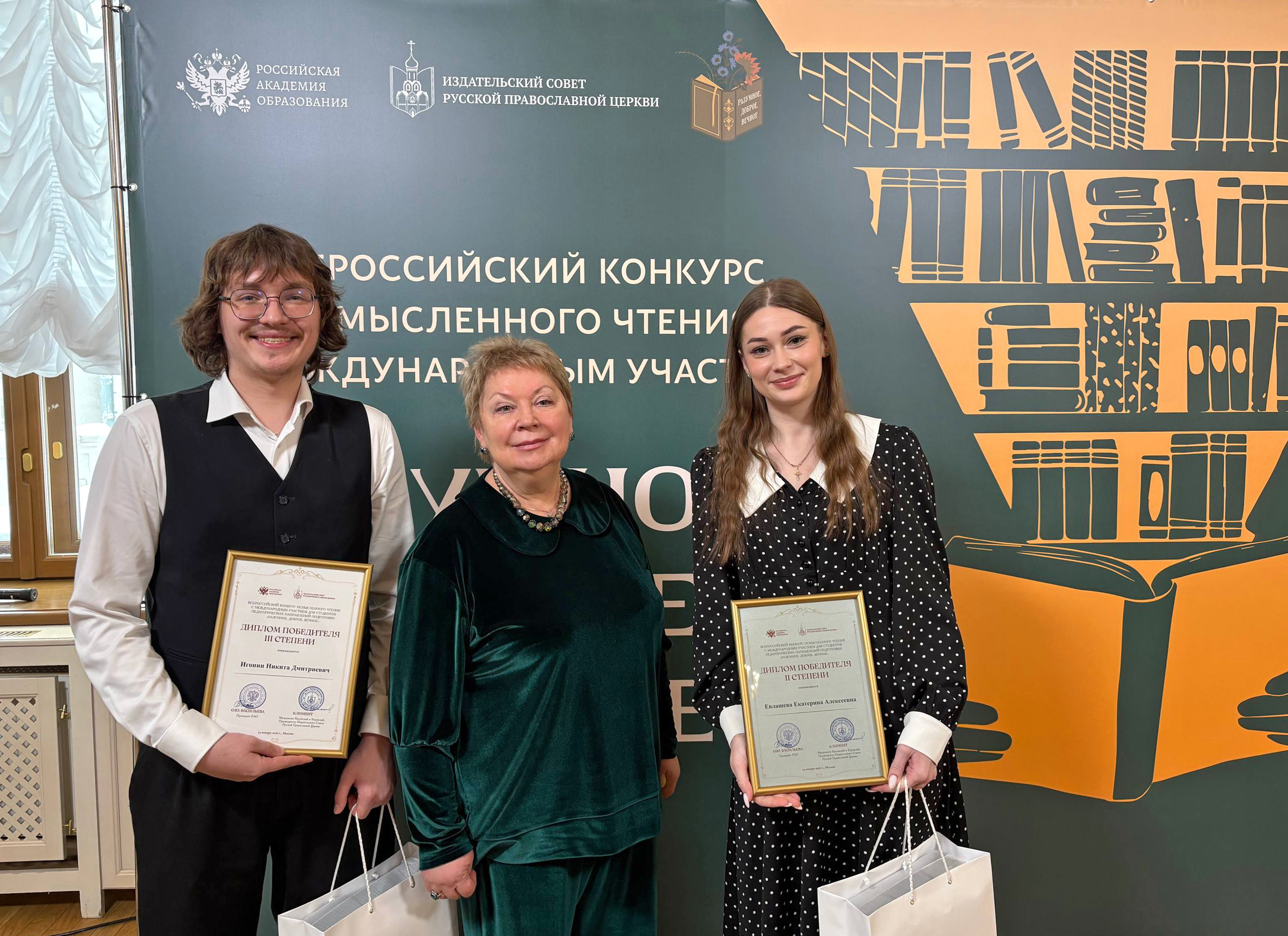 В День российского студенчества, 25 января, в Москве, в стенах исторического Дома Пашкова состоялась торжественная церемония награждения победителей и призеров II Всероссийского конкурса осмысленного чтения для студентов педагогических направлений подготовки с международным участием «Разумное, доброе, вечное». Двое студентов филологического факультета Мордовского государственного педагогического университета имени М. Е. Евсевьева стали лауреатами престижного конкурса.