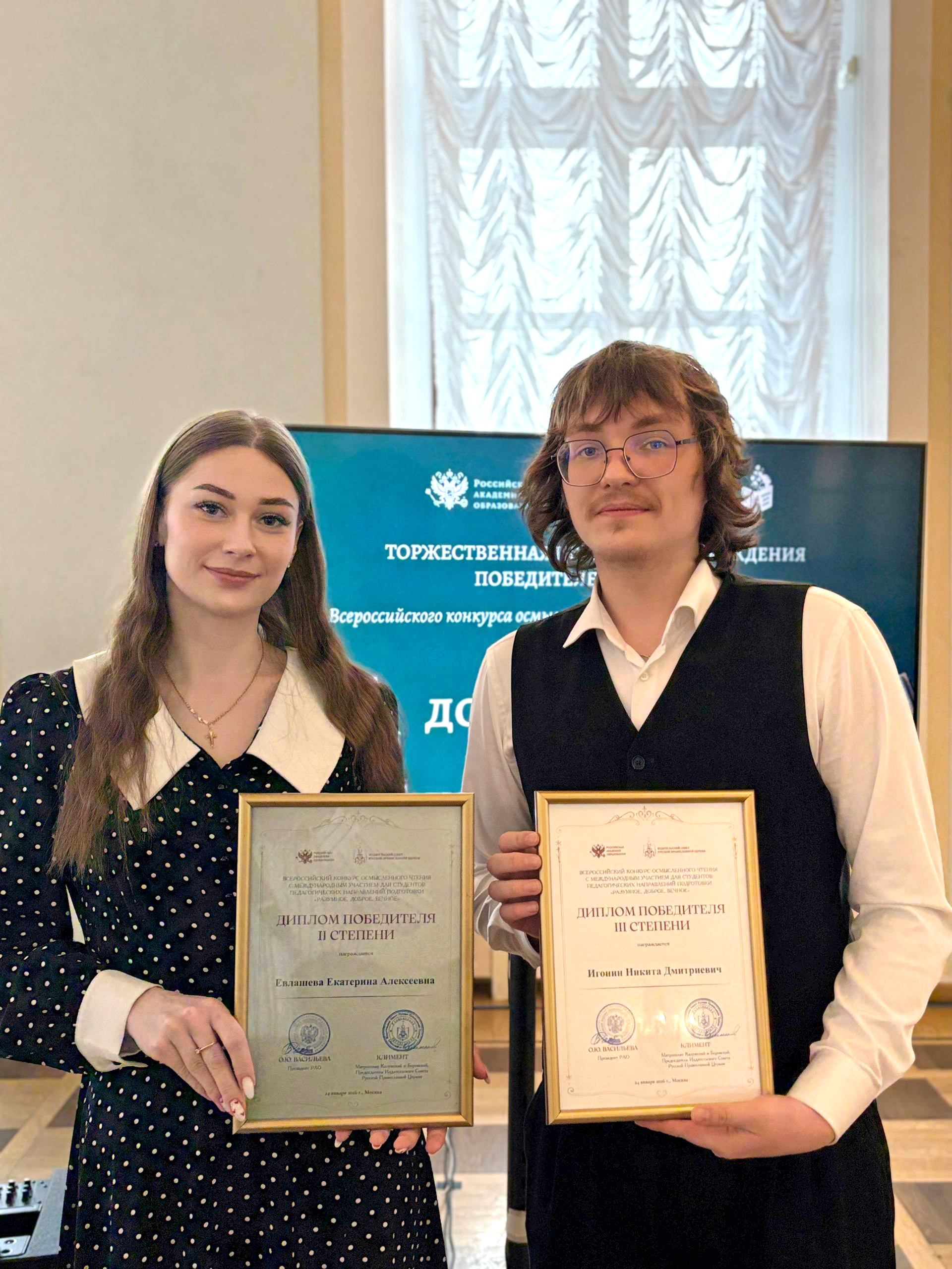 Екатерина Евлашева удостоена диплома II степени, а Никита Игонин стал обладателем диплома III степени.