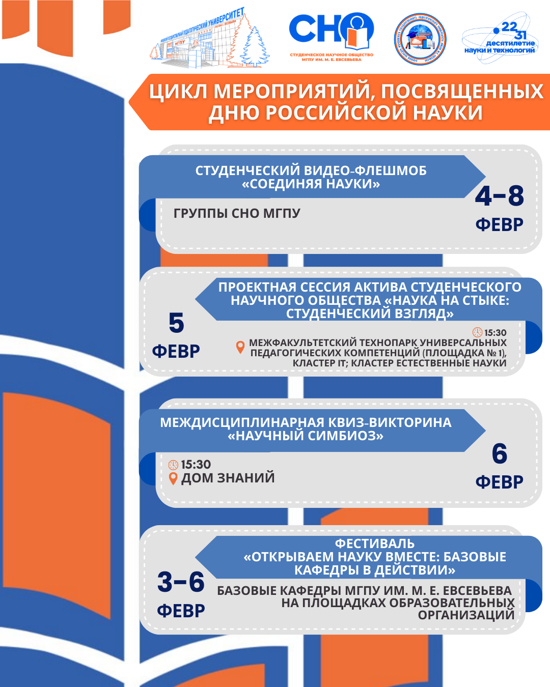 С 4 по 8 февраля предлагаем поддержать Студенческое научное общество МГПУ и присоединиться к видео-флешмобу «Соединяя науки» в социальных сетях.