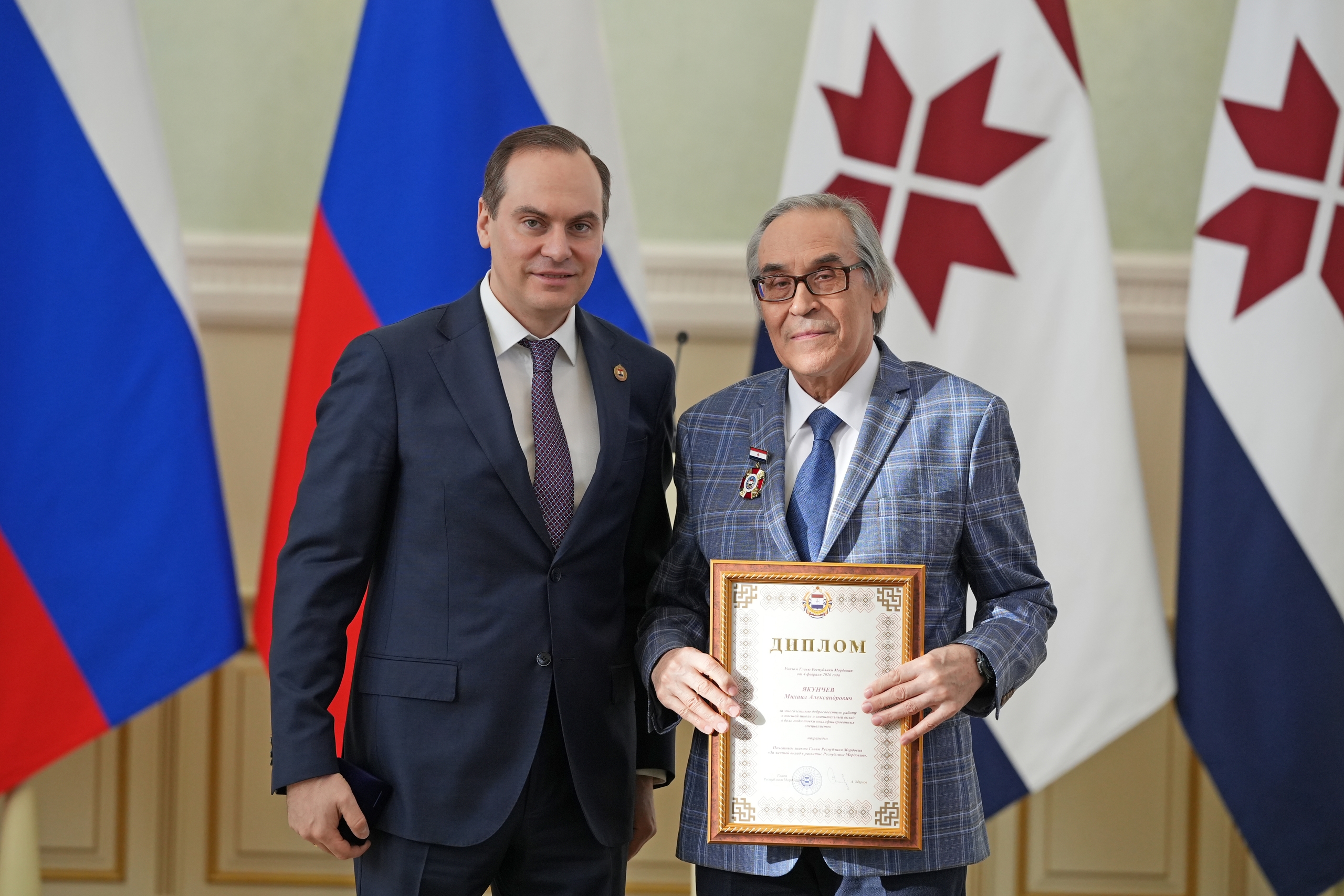 В преддверии Дня российской науки 6 февраля в Доме Республики состоялось торжественное мероприятие, посвященное достижениям в области науки и инноваций. В рамках этой церемонии Глава Республики Мордовия Артём Здунов вручил заслуженные награды студентам и преподавателям Мордовского государственного педагогического университета имени М.Е. Евсевьева, чьи научные изыскания и вклад в развитие региона получили высокое признание.
