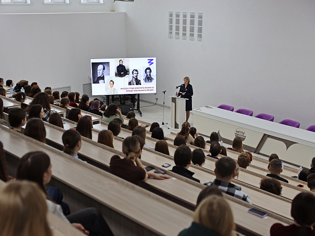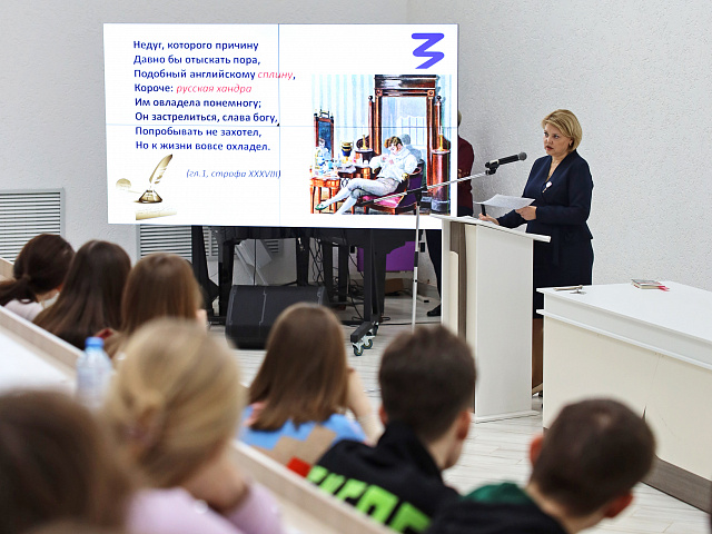 Главным спикером стала доктор филологических наук, профессор кафедры русского языка, литературы и методик обучения О. И. Бирюкова с выступлением «"Евгений Онегин" А. С. Пушкина: тайны, которые вы не разгадали». Заявленная тема сразу привлекла внимание аудитории, превратив лекцию в захватывающий филологический квест. Ольга Ивановна не просто предложила слушателям еще раз вспомнить знакомые сюжетные линии романа, а пригласила их в увлекательное расследование: вместе с лектором студенты пытались разгадать тайны характера Онегина, скрытые смыслы «онегинской строфы» и неоднозначность финала пушкинского текста. Атмосфера интеллектуального поиска и неподдельный интерес не покидали зал на протяжении всего выступления.