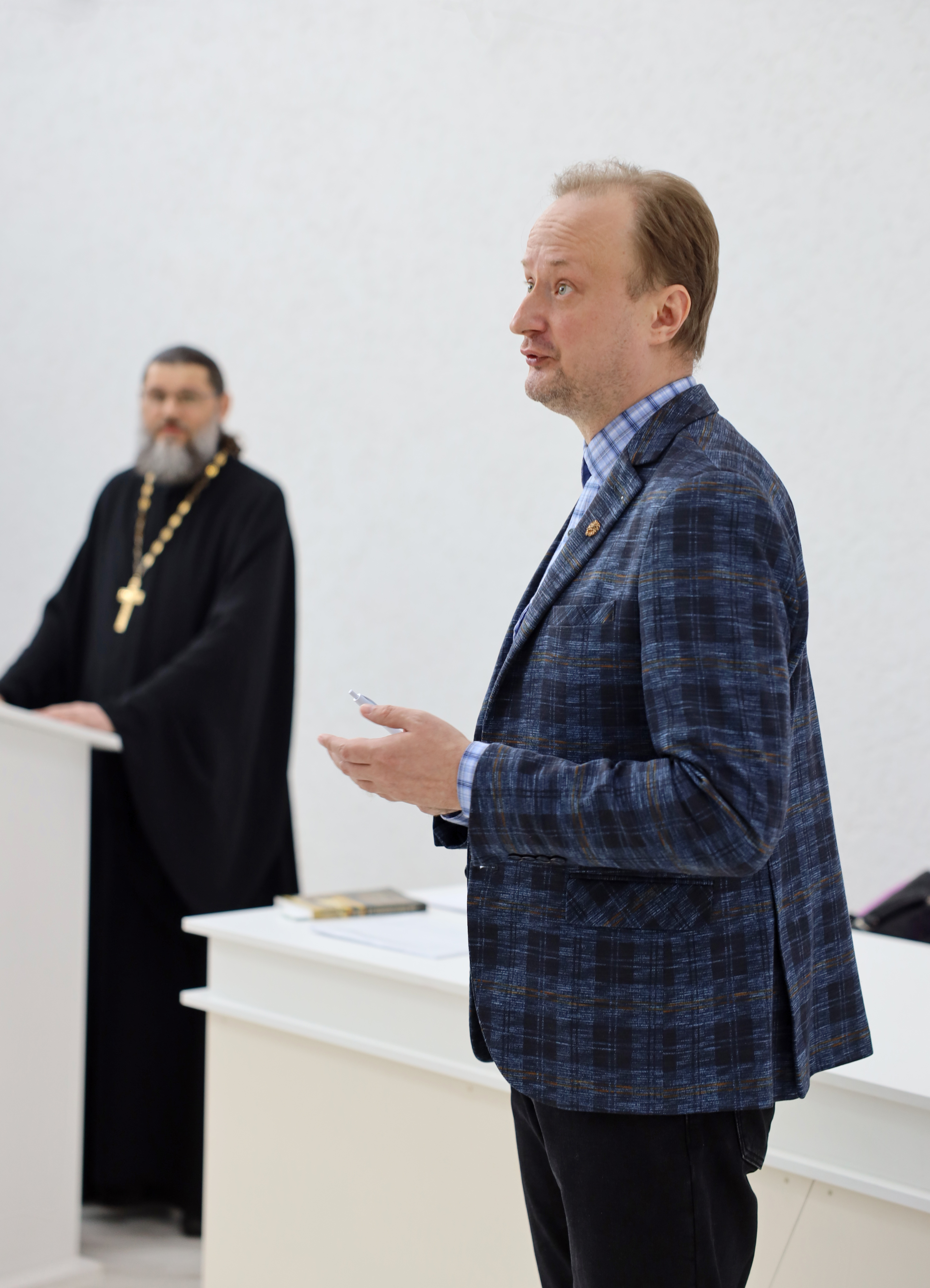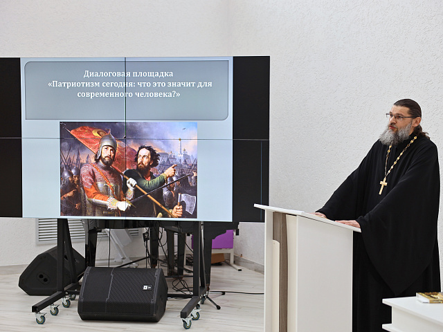 Особый тон беседе задало участие иерея Георгия Николаевича Горюнова. Представитель Русской православной церкви обратился к духовным истокам патриотизма, подчеркнув, что для верующего человека служение Отечеству неразрывно связано с любовью к ближнему и нравственным долгом.