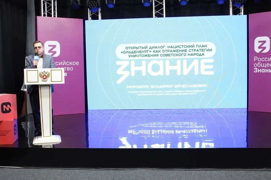 Открыл программу В. В. Мирошкин, кандидат исторических наук, доцент кафедры отечественной и зарубежной истории и методики обучения. Он представил слушателям лекцию на тему: «Нацистский план «Ольденбург» как отражение стратегии уничтожения советского народа». В своем выступлении лектор подробно остановился на малоизвестном широкой аудитории экономическом аспекте геноцида. Вопреки распространенному представлению о хаотичности оккупационного режима, В. В. Мирошкин представил план «Ольденбург» (также известный как «Зеленая папка» Геринга) как стройную и циничную доктрину управления ресурсами захваченного СССР. На основе архивных документов он изложил, каким образом продовольственная политика вермахта и хозяйственных штабов была намеренно выстроена на принципе «избыточного и недостаточного потребления». Слушателям были представлены данные, демонстрирующие, что планирование голода для крупных городов, включая блокадный Ленинград, и изъятие продовольствия в сельской местности не являлись «издержками войны», а были прямым инструментом достижения цели – сокращения «лишнего славянского населения». Особый акцент в лекции был сделан на том, как экономический расчет смерти миллионов людей предшествовал непосредственным карательным акциям на местах, что позволяет рассматривать «Ольденбург» как фундамент всей политики геноцида на Востоке.