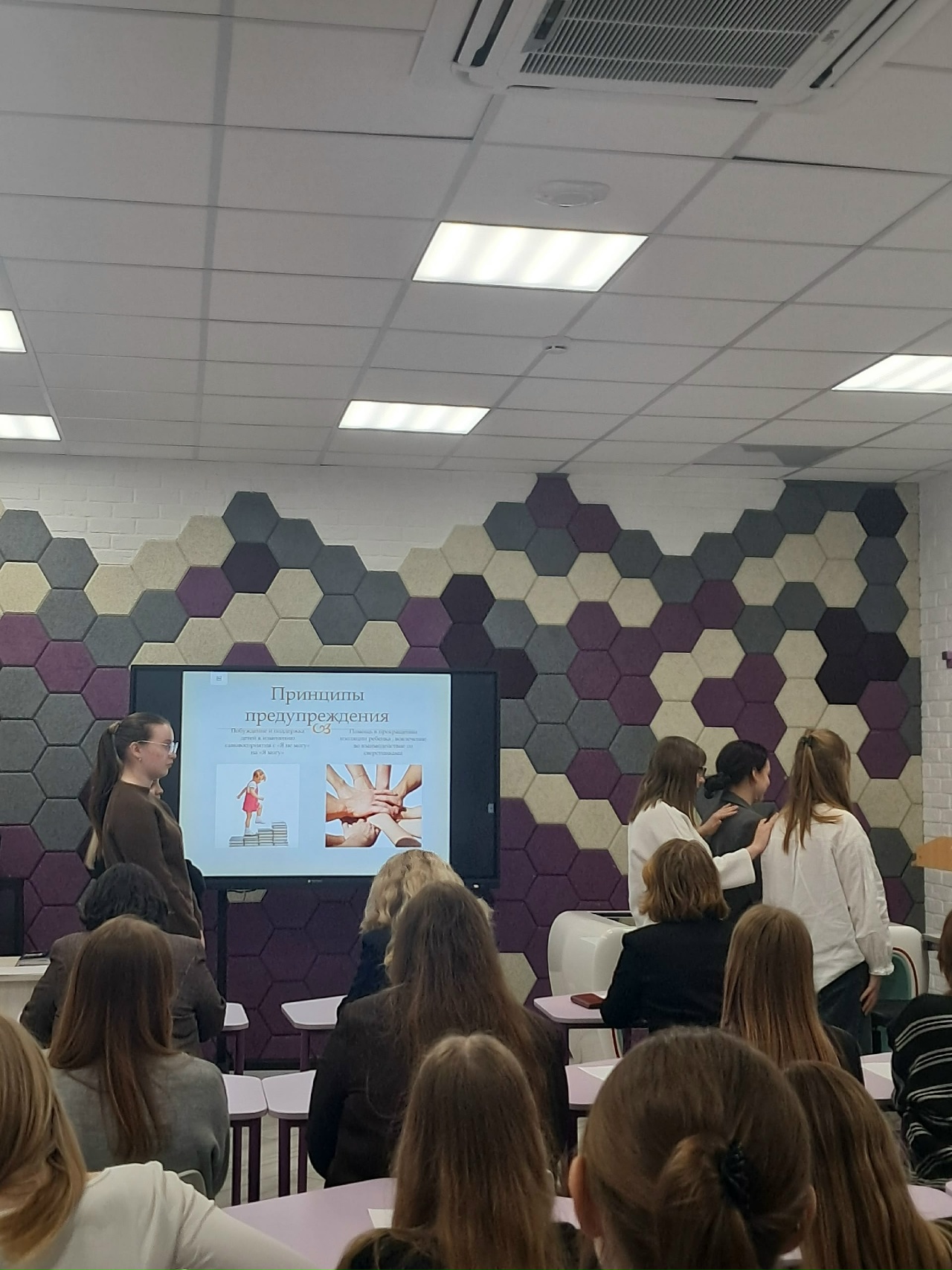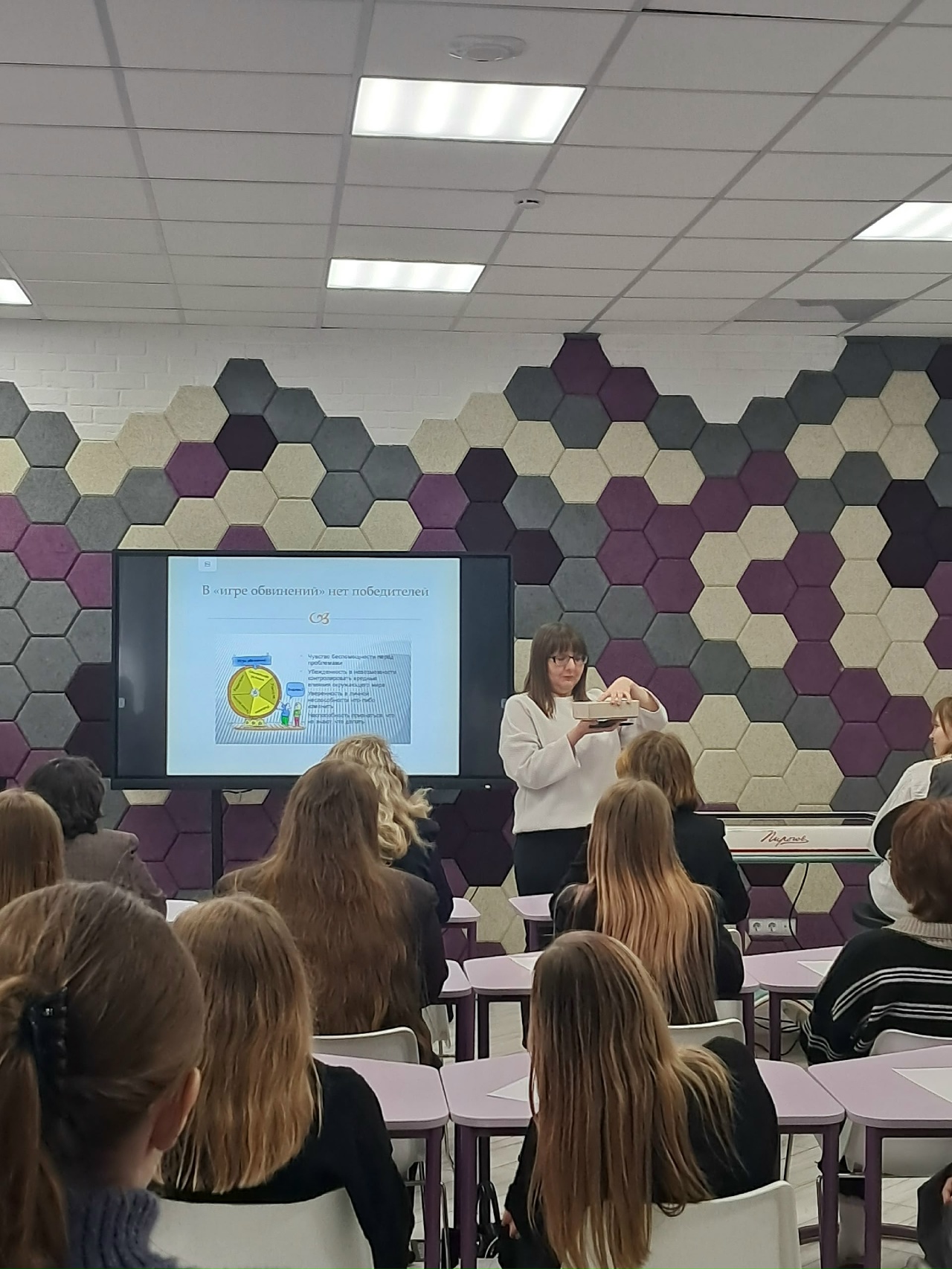 Участникам демонстрировались практикоориентированные технологии: анализ кейсовых задач, элементы психогимнастики, тренинговых упражнений, позволяющие развить критическое мышление, научить распознавать ранние признаки деструктивных тенденций; сформировать навыки принятия ответственных решений.