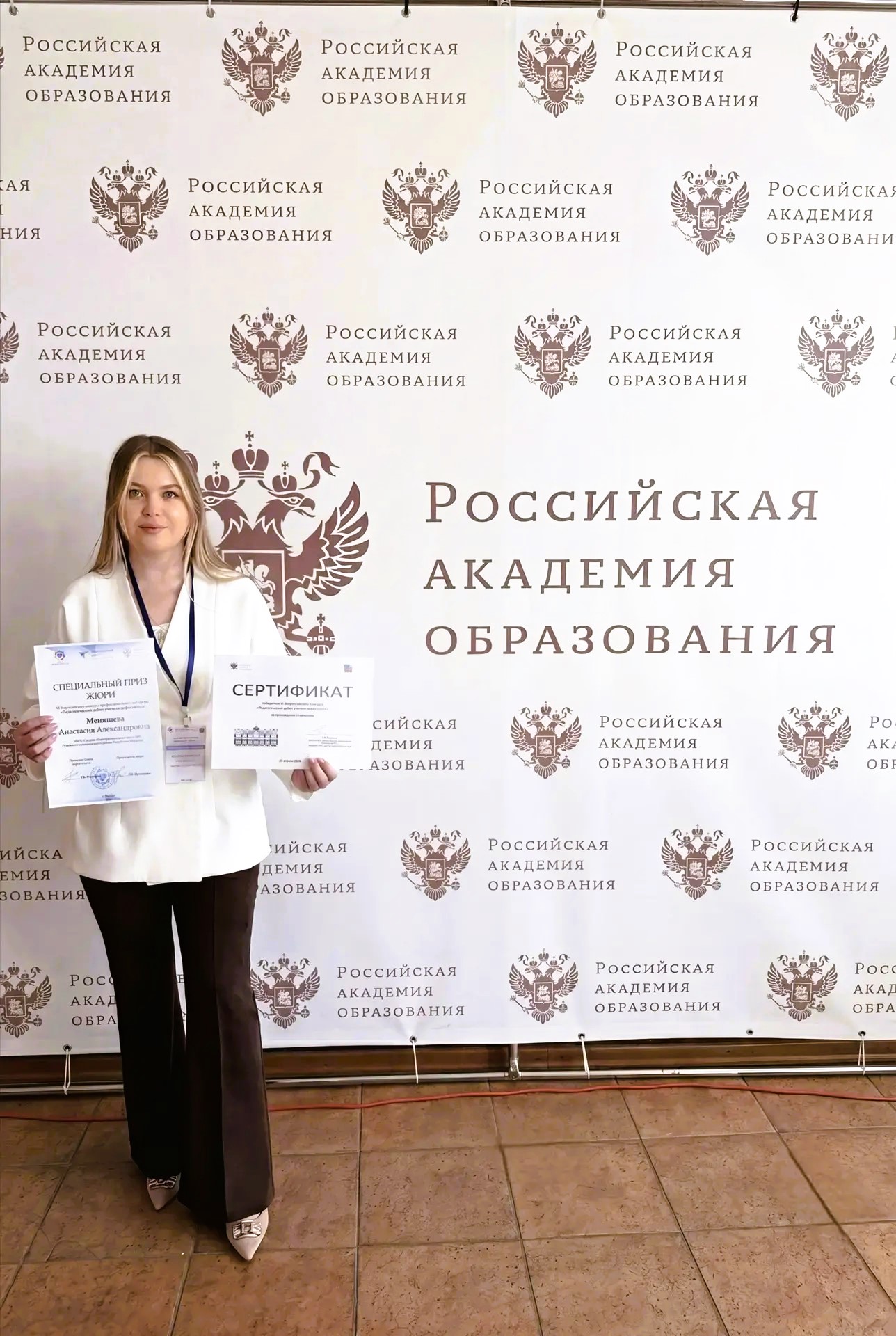 23 апреля 2026 года в Москве прошёл очный финальный этап VI Всероссийского конкурса «Педагогический дебют учителя-дефектолога». Специальный приз жюри конкурса и сертификат на стажировку в Российской академии образования получила Меняшева Анастасия Александровна, магистрантка 2 курса направления подготовки Специальное (дефектологическое) образование профиля Проектирование программ логопедической помощи факультета психологии и дефектологии.