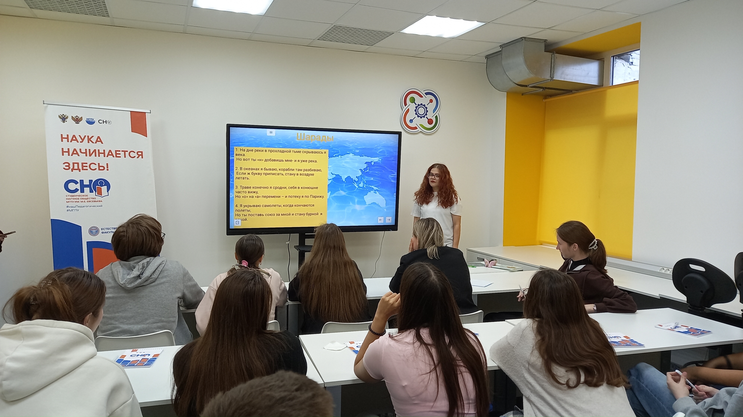 10 сентября 2025 г. на базе Межфакультетского технопарка универсальных педагогических компетенций членами СНО ЕТФ – Иноятходжаевой Александрой, Зуевой Дарьей и Бикуревой Викторией для студентов первого курса была проведена Интеллектуальная игра «Путешествие по материкам», целью которого служило обобщение знаний по курсу «География материков», расширение кругозора участников и развитие познавательного интереса к предмету.
